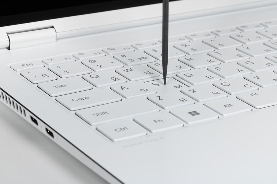 Кнопка включения питания располагается в дальнем углу клавиатуры и отличается от окружающих только маркировкой. При работе ее можно перепутать с другими и нажать по ошибке. В эту кнопку встроен дактилоскопический сканер, дающий возможность авторизовать доступ пользователя к системе без необходимости дополнительного ввода пароля.
