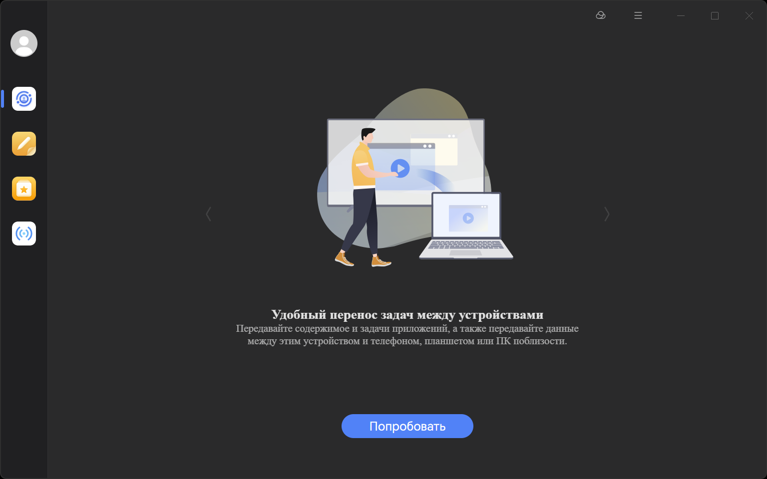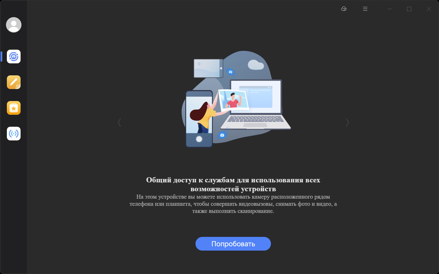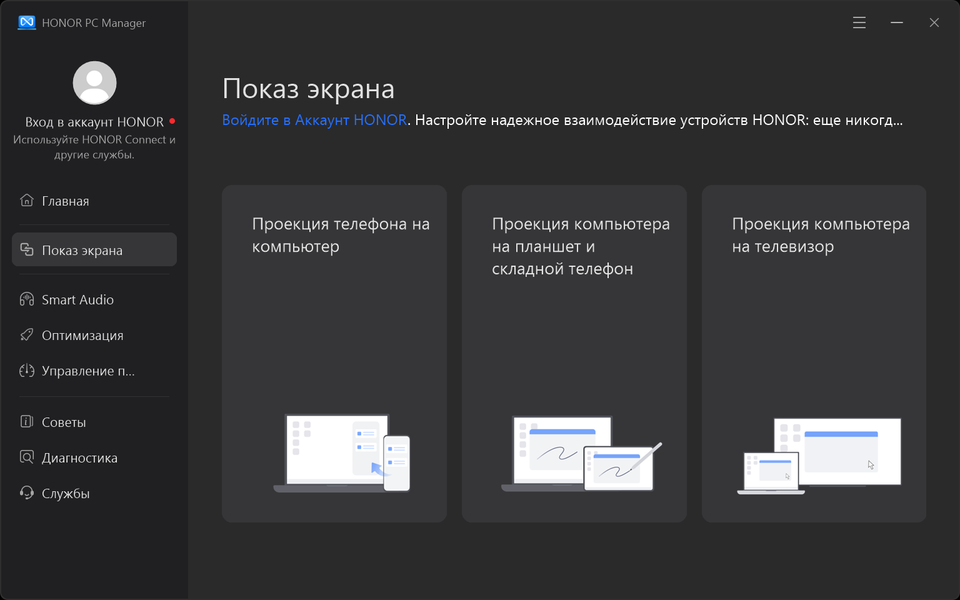 Раздел «Показ экрана» предлагает возможности проекции телефона на компьютер, компьютера на телефон или планшет и ПК на телевизор.