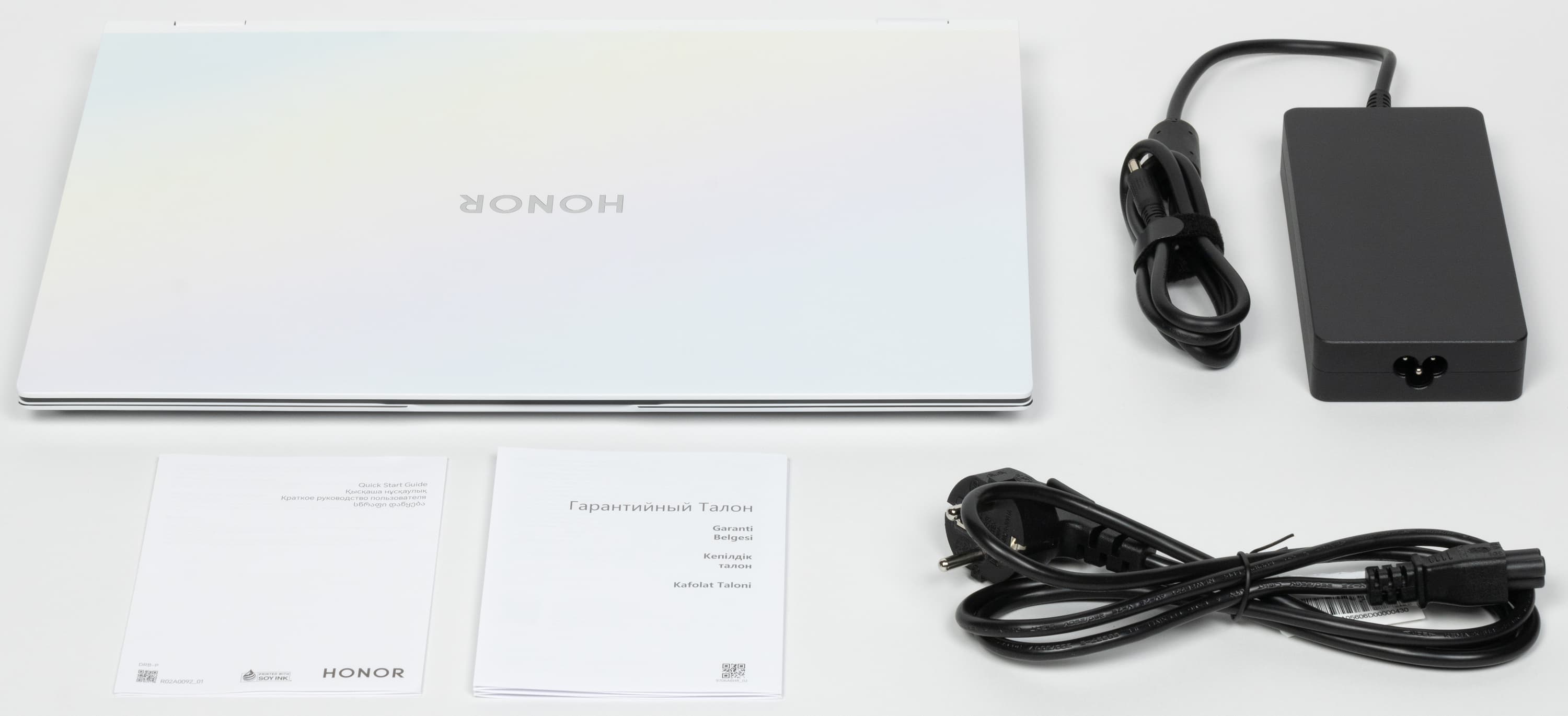 В комплекте поставки помимо самого ноутбука имеются адаптер питания (подробности ниже) и традиционные бумажки.