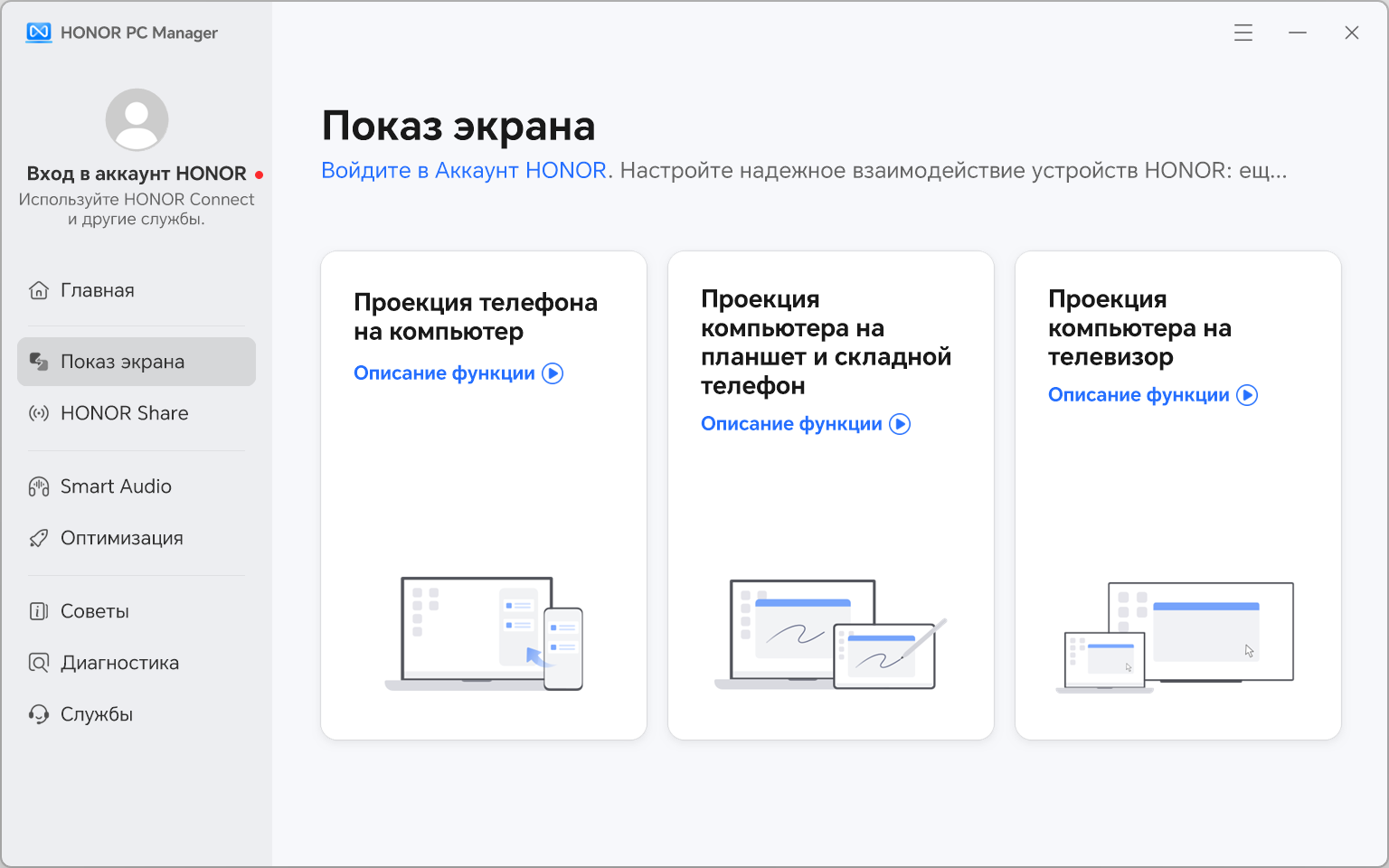 Honor Connect служит для обмена данными между ноутбуками, планшетами и смартфонами Honor.