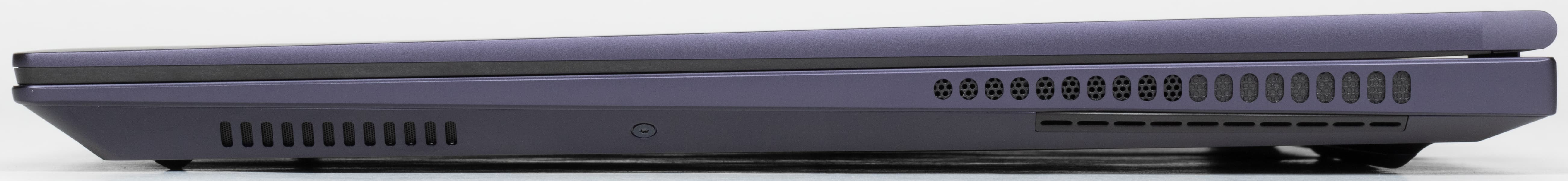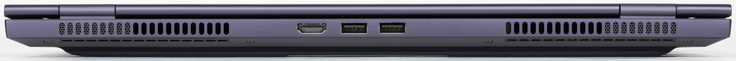 На правой боковой панели разъемов нет. Конечно, иметь два «обычных» порта USB полезно, но их расположение сзади не слишком удобно на практике. Увы, в угоду стилизации боковые панели заужены до минимума (сам-то ноутбук не настолько тонкий).