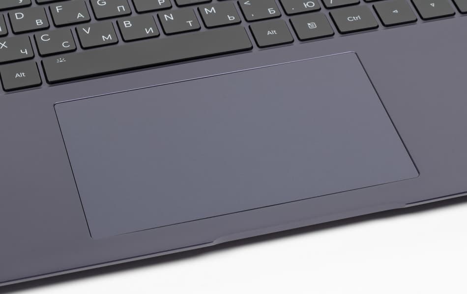Перед клавишами лицевой панели помещается увеличенный по площади, чуть утопленный и немного смещенный влево кликпад размером 130×82 мм без выделенных кнопок. Все жесты поддерживаются.