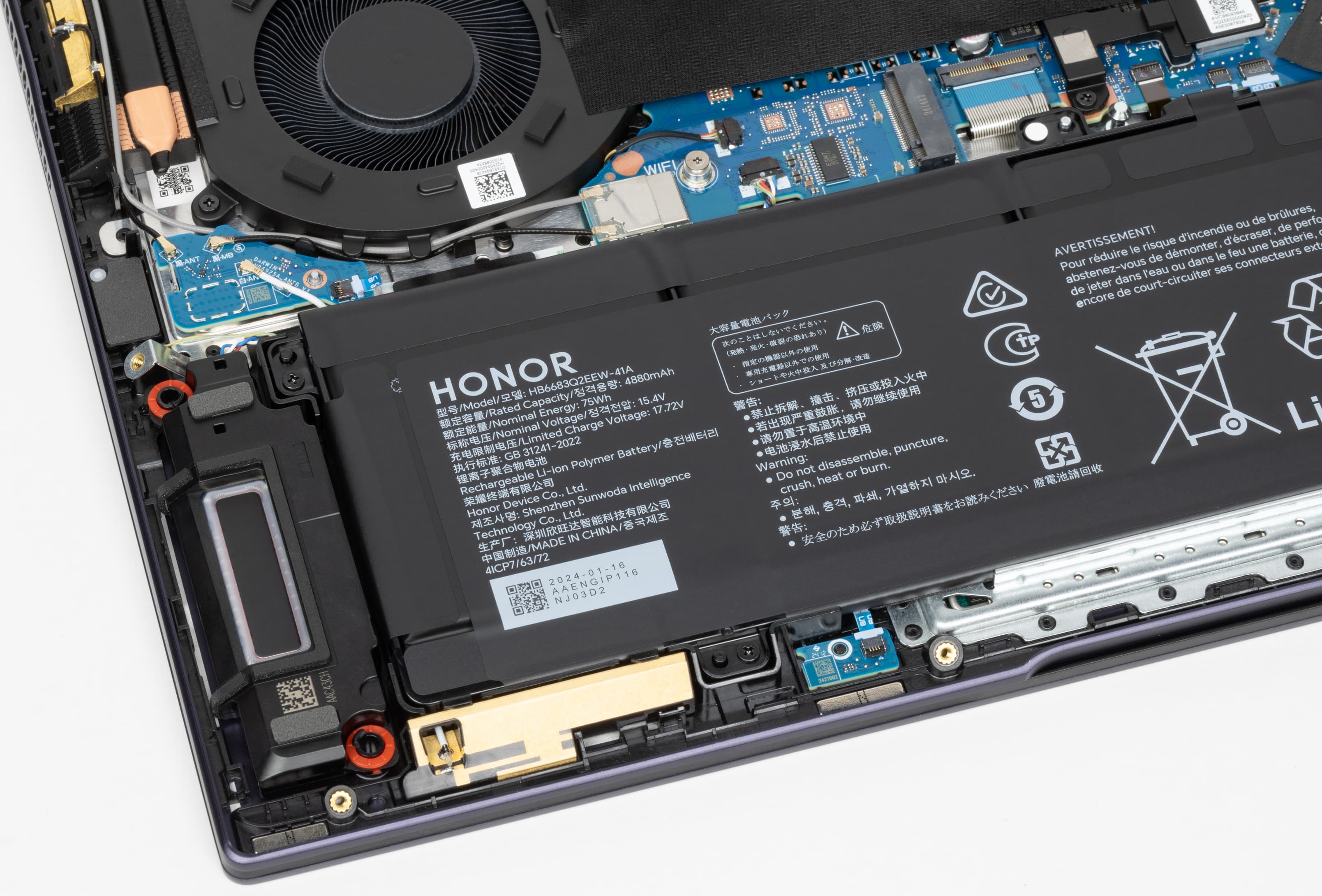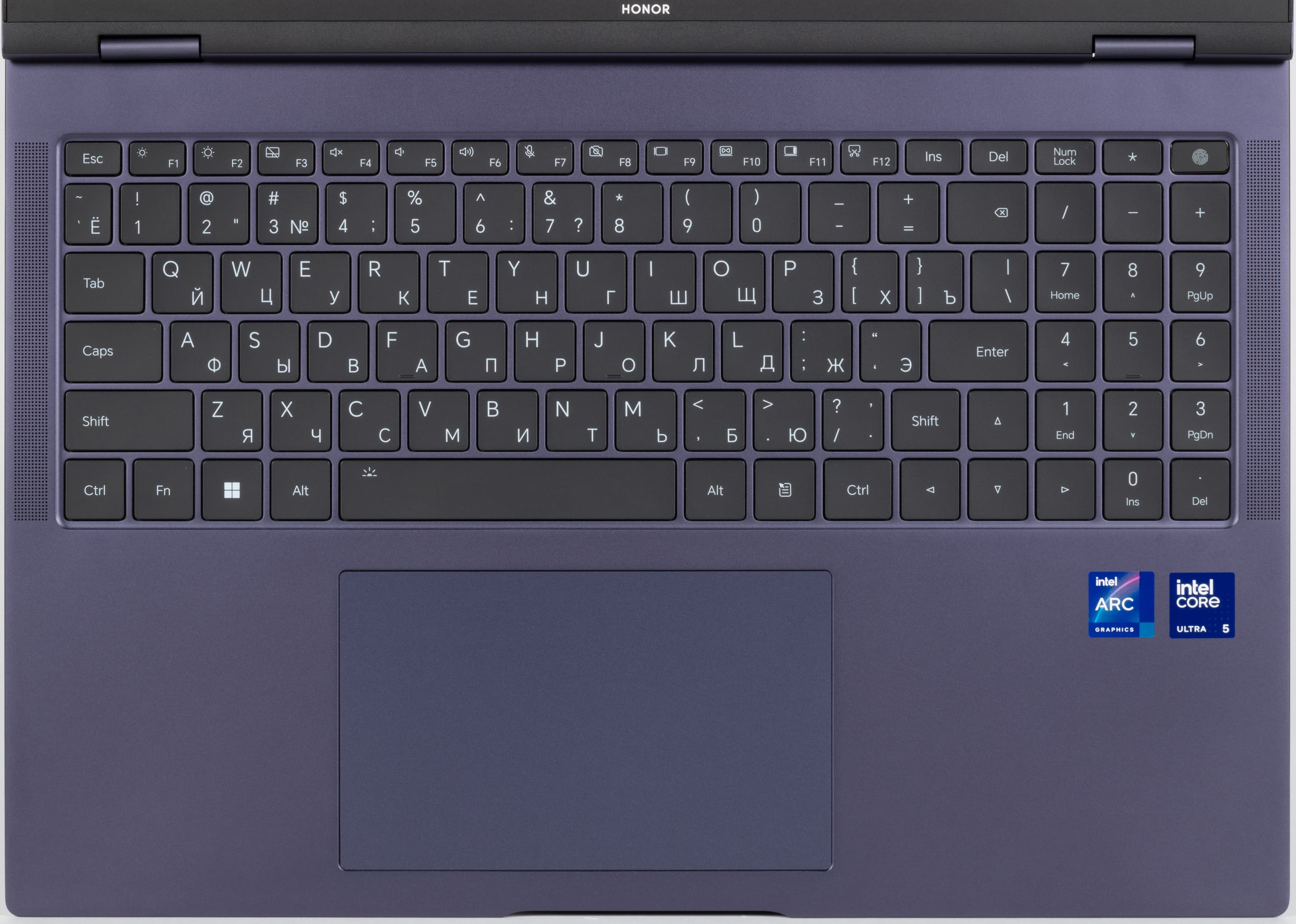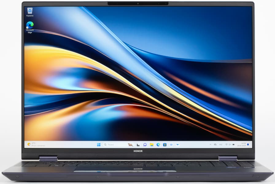 Портативный ПК новой серии Honor MagicBook Pro обладает всеми достоинствами делового ноутбука: металлический корпус, совмещенный с выключателем питания сканер отпечатков пальцев, клавиатура с полнофункциональным цифровым блоком, миниатюрная камера для конференц-связи в рамке экрана, возможность подключить до трех мониторов одновременно. От «собратьев по классу» машину отличают новейший процессор Intel Core Ultra 5 с интегрированным видеоускорителем Intel Arc Graphics и «нейронным» вычислительным блоком, усовершенствованная система охлаждения с двумя вентиляторами, тремя тепловыми трубками и тремя радиаторами, экран с разрешением 3K, высокой яркостью и 100-процентным охватом цветовых пространств DPI-P3 и sRGB. Беспроводной адаптер новинки экипирован тремя антеннами, что улучшает его «пробивную способность». Энергоэкономичная начинка позволяет при работе от аккумулятора набирать текст в течение почти 10,5 часов или смотреть видео более 8 часов. Опустошенная батарея заряжается до половины емкости за полчаса, а до 80% — за 52 минуты. В тестах реальных приложений машина демонстрирует хорошую производительность, а в играх показывает весьма привлекательное быстродействие для уровня бюджетной графики.