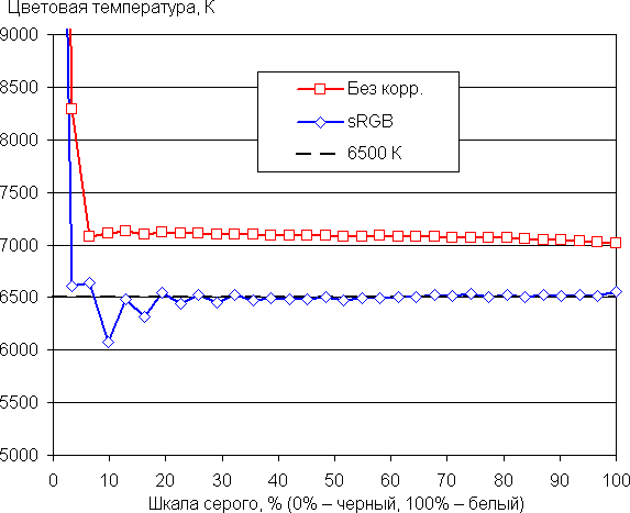 | Яркость белого поля | 500 кд/м² | −5,0 | 4,3 |