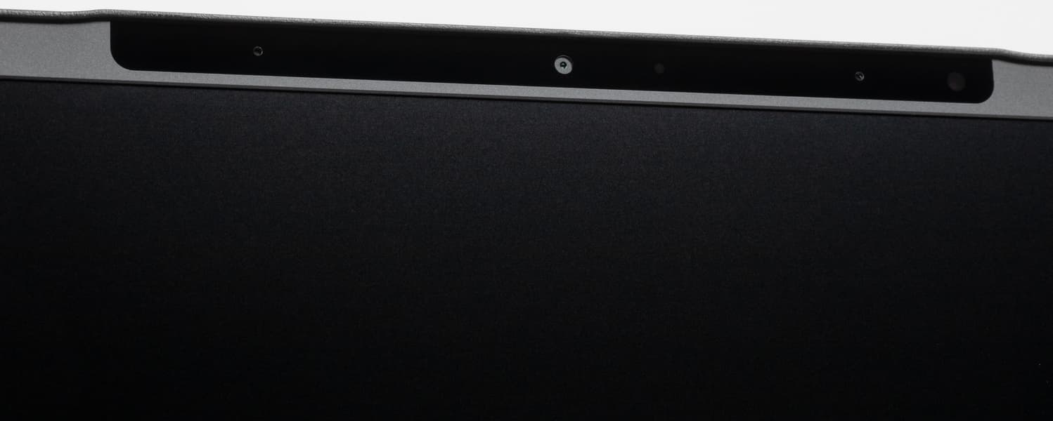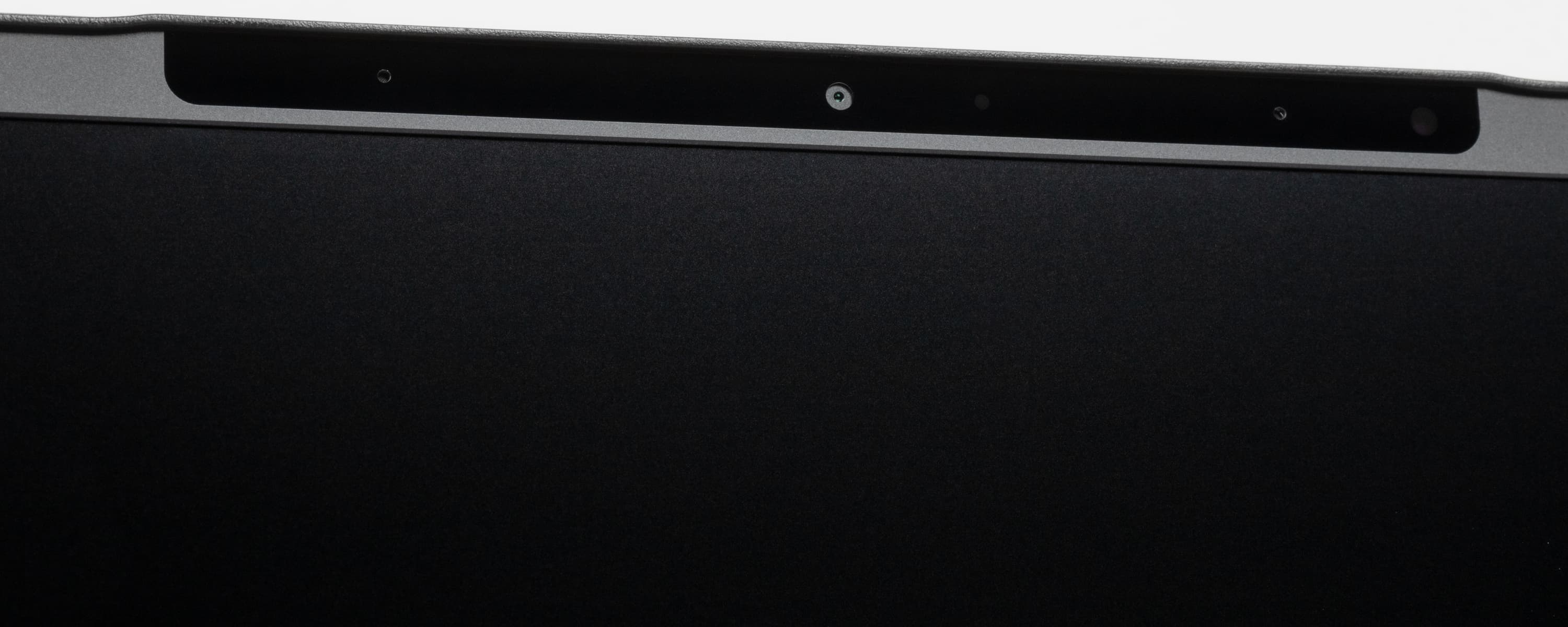 В верхней части экранной рамки имеется миниатюрная камера для видеоконференций. Механической шторки она не имеет.