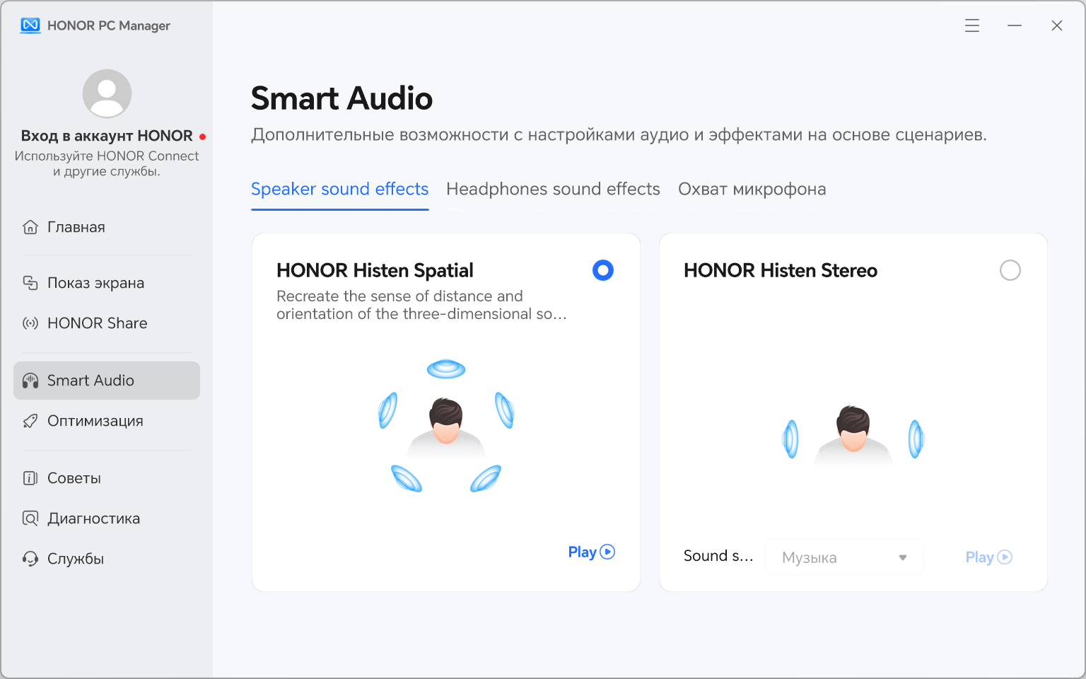 Smart Audio дает возможность задействовать эффекты пространственного звучания аудио.