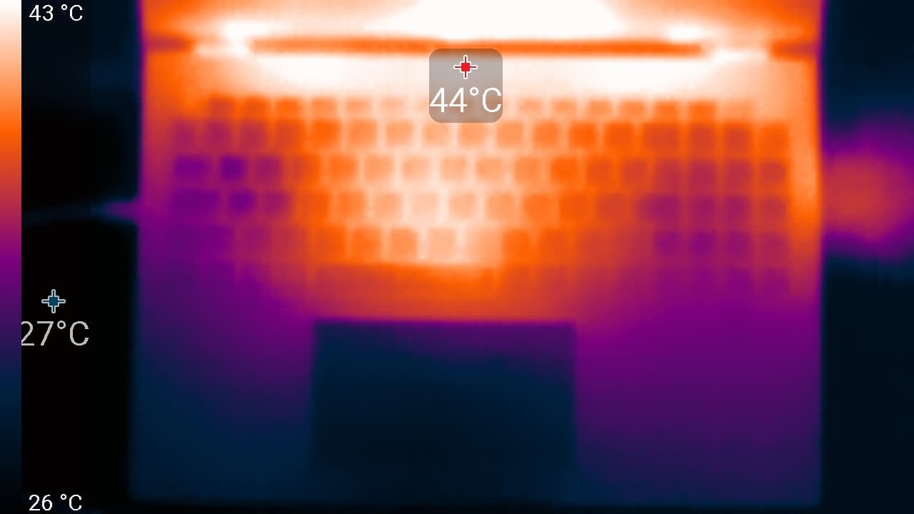 При питании от сети или от батареи и при ручном управлении яркостью ее максимальное значение составило 530 кд/м² (в центре экрана на белом фоне). Максимальная яркость очень высокая, поэтому за ноутбуком можно будет работать на улице ясным днем, если в экране не будет отражать что-то очень яркое.