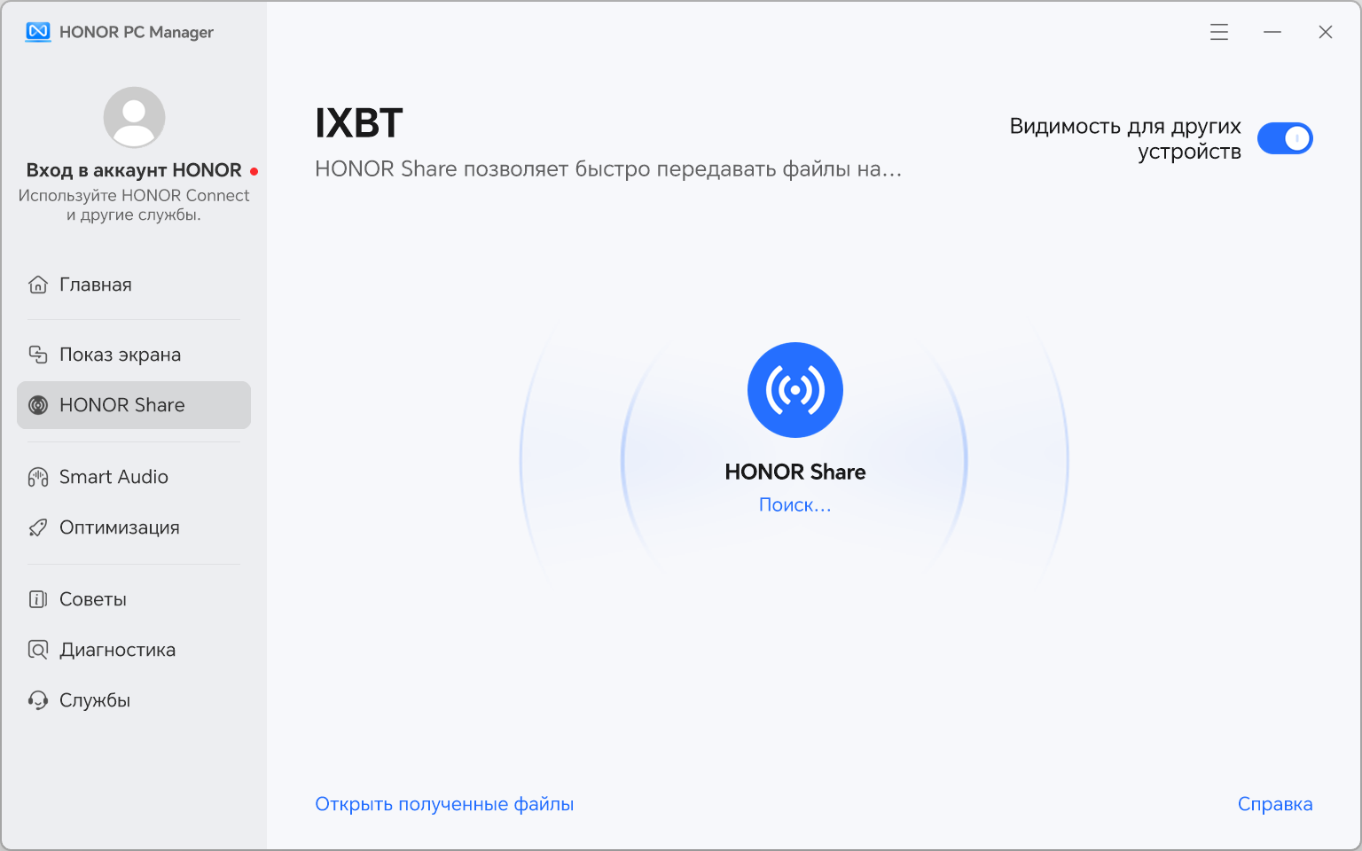 В разделе Honor Share можно организовать обмен файлами с другими устройствами Honor.