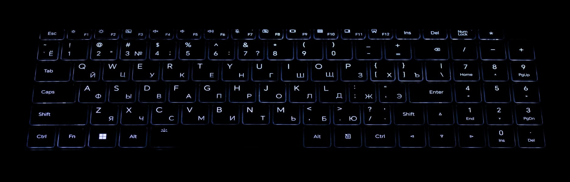 Клавиатура снабжена двухуровневой по яркости подсветкой (третье состояние — подсветка выключена); переключение производится повторным нажатием аккорда Fn+пробел. Все символы и торцы кнопок подсвечиваются одинаково.