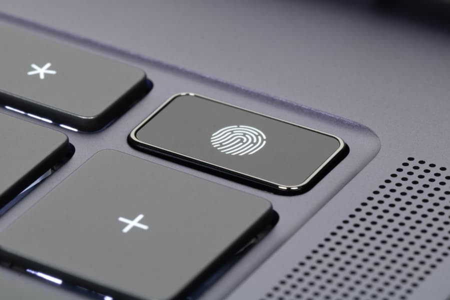 Выключатель питания расположен справа в верхнем ряду клавиатуры. Он совмещен с дактилоскопическим сканером, благодаря чему идентификация пользователя происходит автоматически при включении ноутбука.
