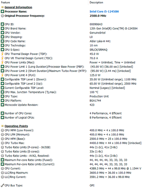 | Процессор | Intel Core i5-12450H (Intel 7, Alder Lake-H, 4 P-ядра/8 потоков + 4 E-ядра, до 4,4 ГГц, L3-кэш 12 МБ, TDP 35—95 Вт) | |