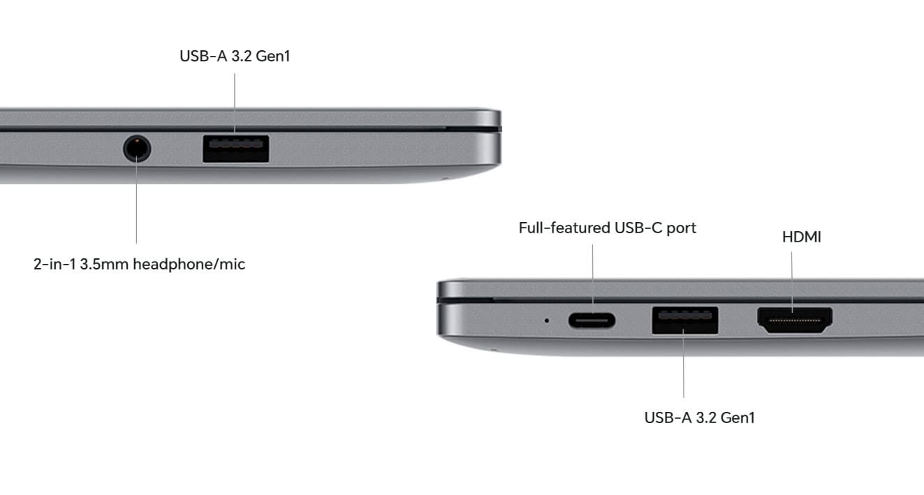 Все порты Honor MagicBook X 14 2023 выведены на боковые стороны корпуса. Справа размещены USB 3.2 Gen1 Type-A и универсальный «миниджек» для наушников и микрофона, а слева — индикатор питания, USB 3.2 Gen2 Type-C, USB 3.2 Gen1 Type-A и HDMI 1.4b.