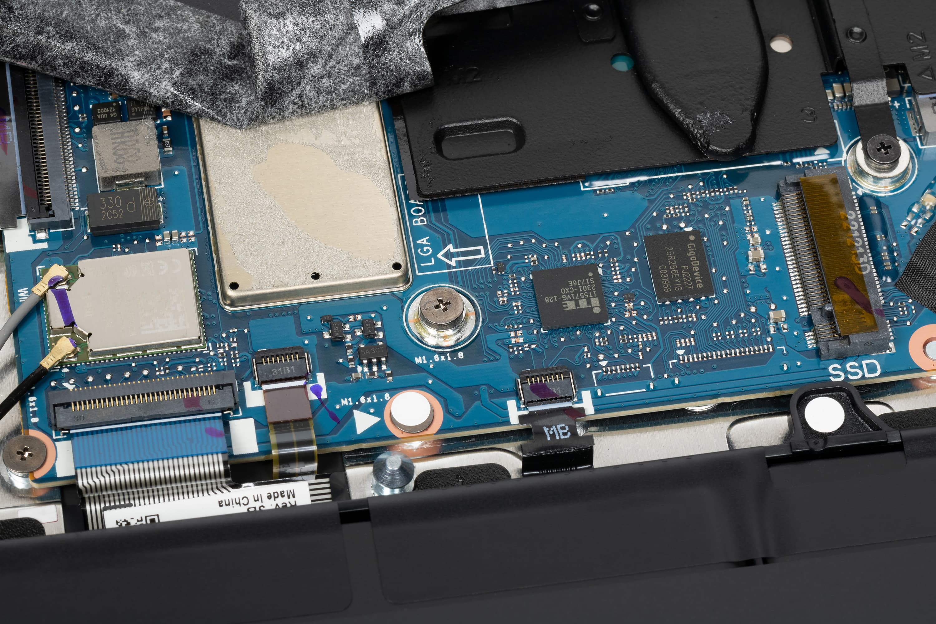 | Оперативная память | 16 (4×4) ГБ LPDDR4X-4266 МГц (распаяна на плате), четырехканальный режим (соответствует двухканальному режиму DDR4), тайминги 36-39-39-90 CR1 доступна версия с объемом памяти 8 ГБ | |