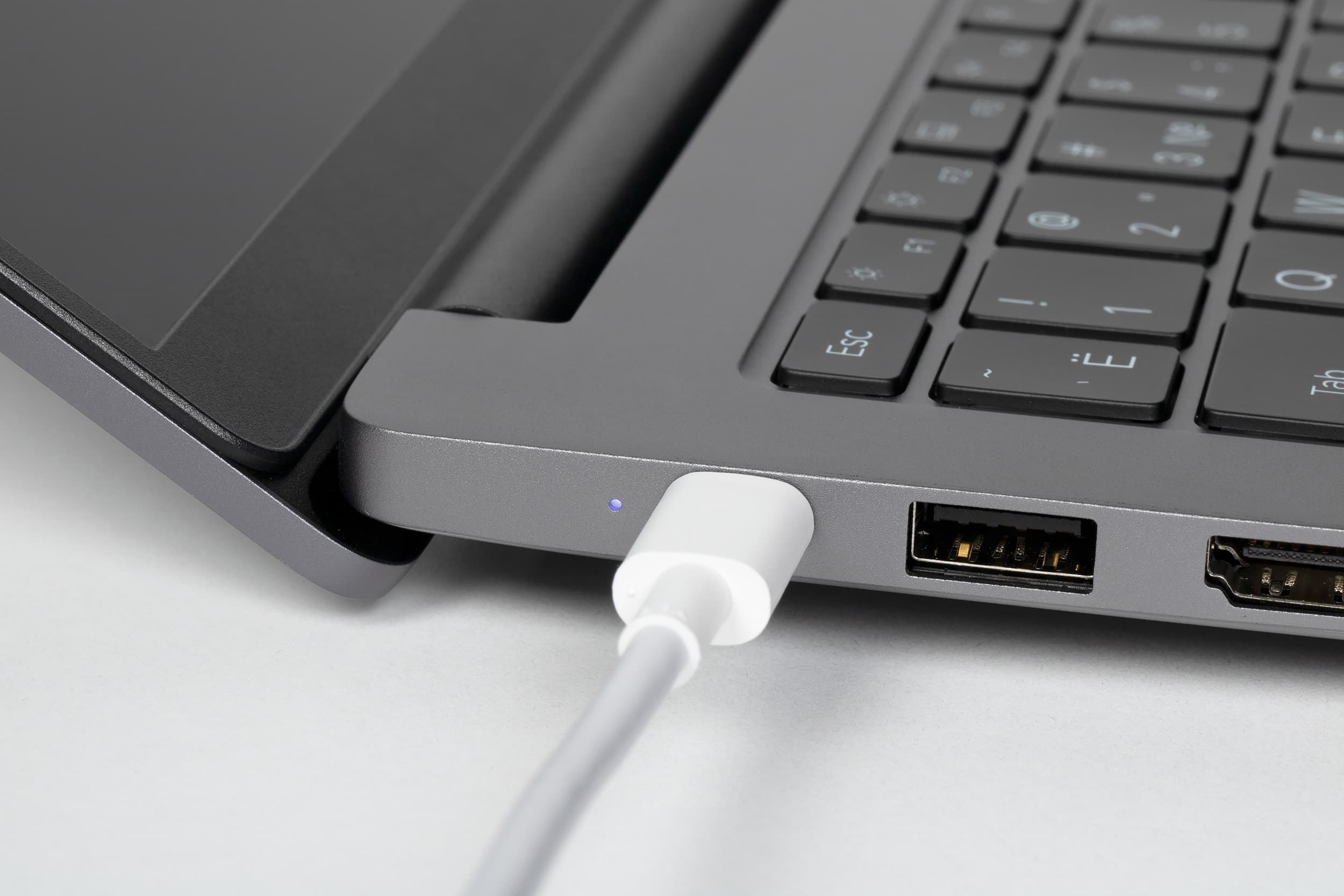 В характеристиках ноутбука заявлено, что за 30 минут заряда аккумулятор восполняется на 45%, а время полного заряда аккумулятора составит не более 1,5 часов.