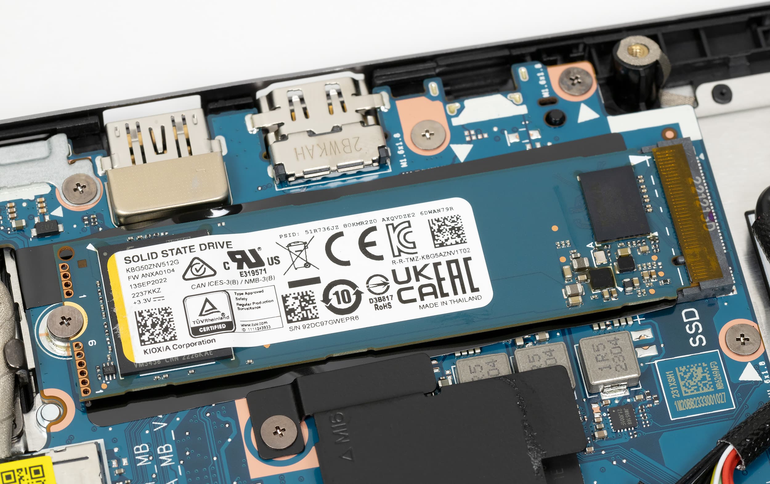 В нашей версии ноутбука установлен накопитель Kioxia KBG50ZNV512G, но по сложившейся практике вполне допускаем, что в одной и той же модели ноутбука Honor могут попадаться SSD разных производителей.