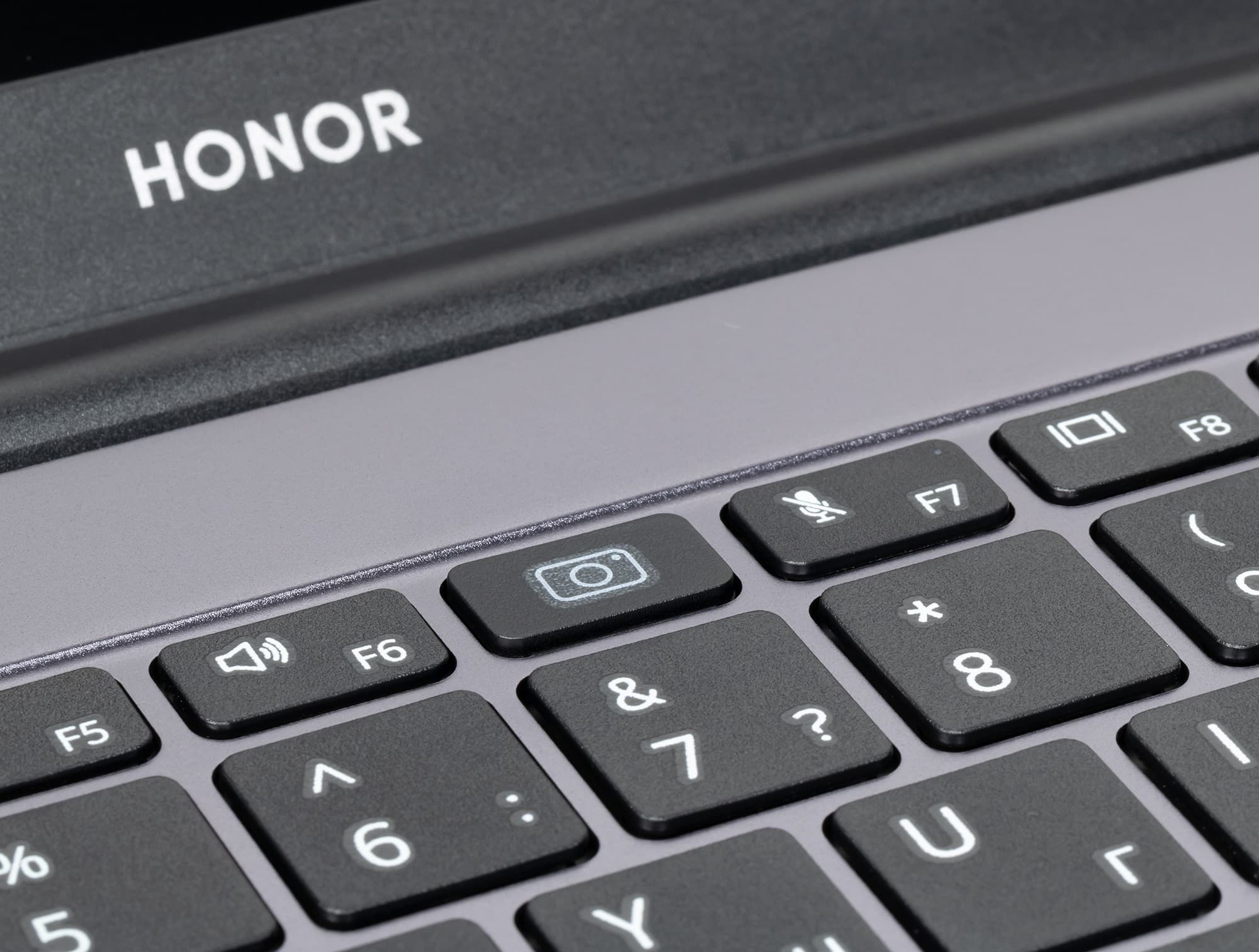 Третье устройство ввода — веб-камера — никаких изменений в сравнении с предыдущими моделями ноутбуков Honor не претерпела. Она все так же размещена в центральной функциональной кнопке и открывается после легкого нажатия на нее.
