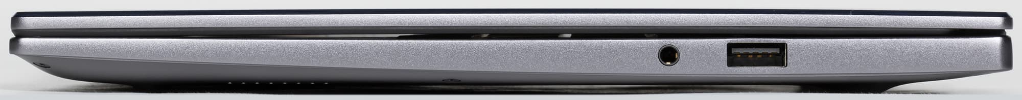 Порты традиционно размещены на боковых сторонах корпуса. Слева выведен единственный USB Type-C интерфейса 2.0 с индикатором зарядки ноутбука (без поддержки обратной зарядки), порт USB 2.0 и видеовыход HDMI, а справа — «миниджек» для наушников и микрофона, а также единственный быстрый порт USB 3.0 Type-A.