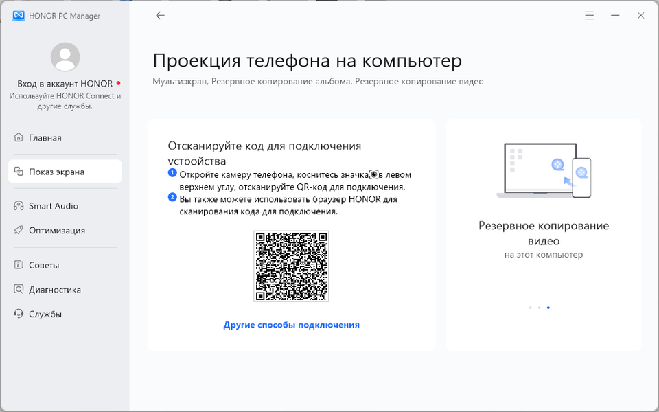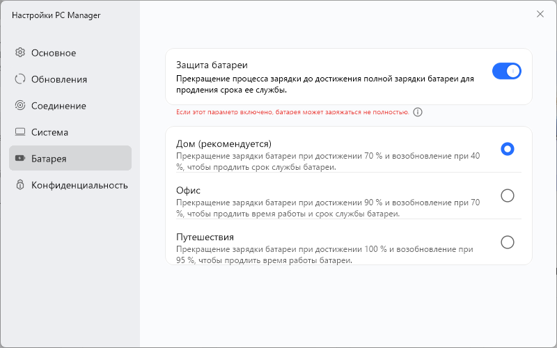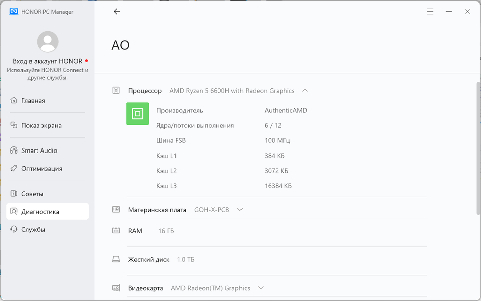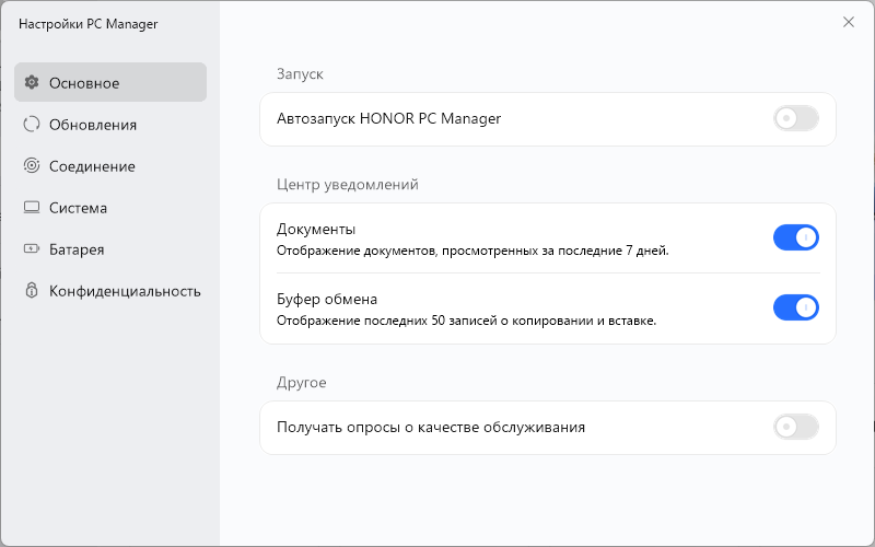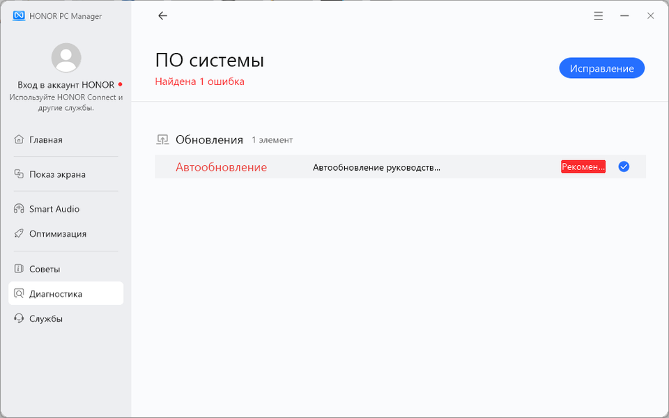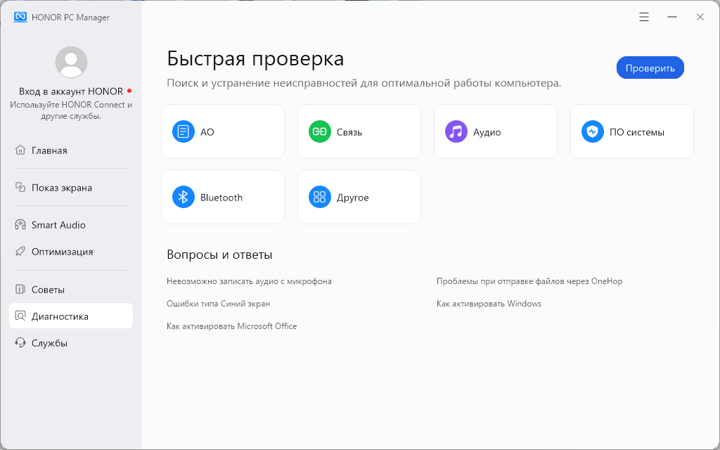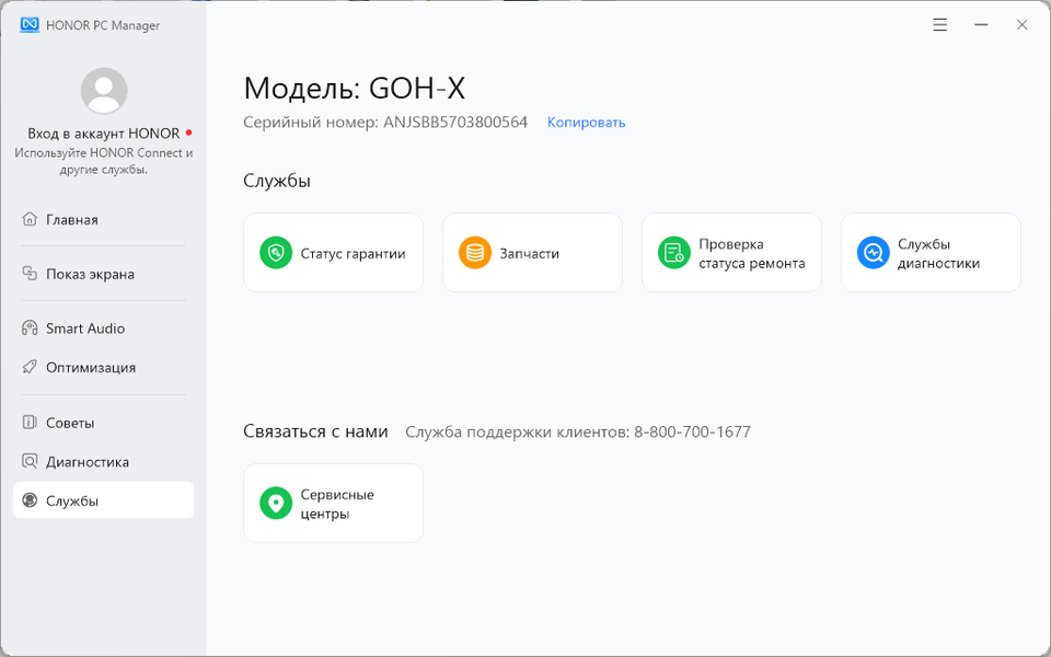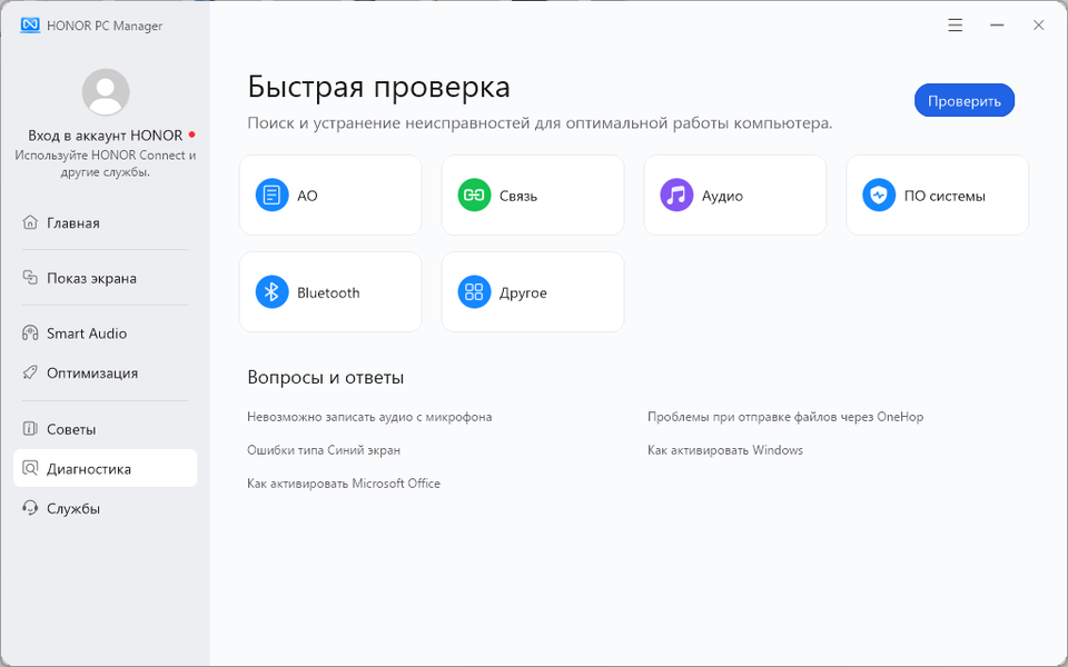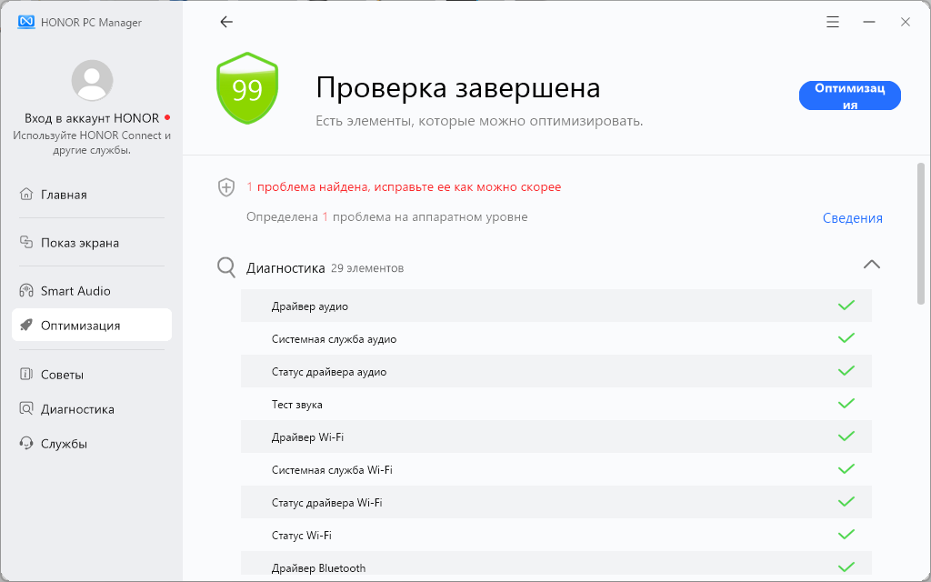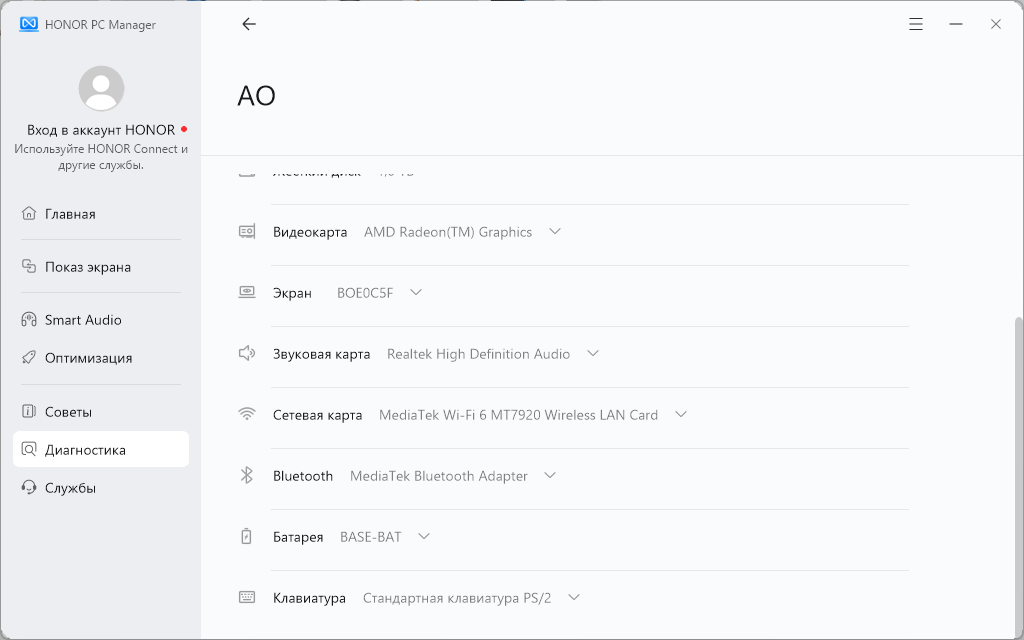 | Приложение | «Умный» режим | Honor PC Manager не загружен |