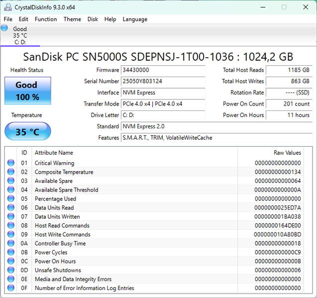 | Накопитель | SSD 1 ТБ (SanDisk PC SN5000S SDEPNSJ-1T00-1036, M.2 2280, NVMe, PCIe 4.0 ×4) | |