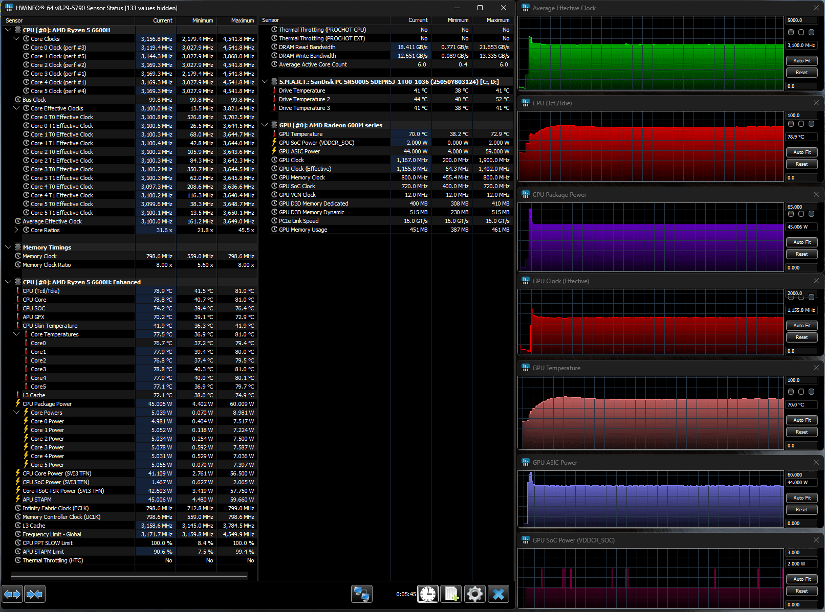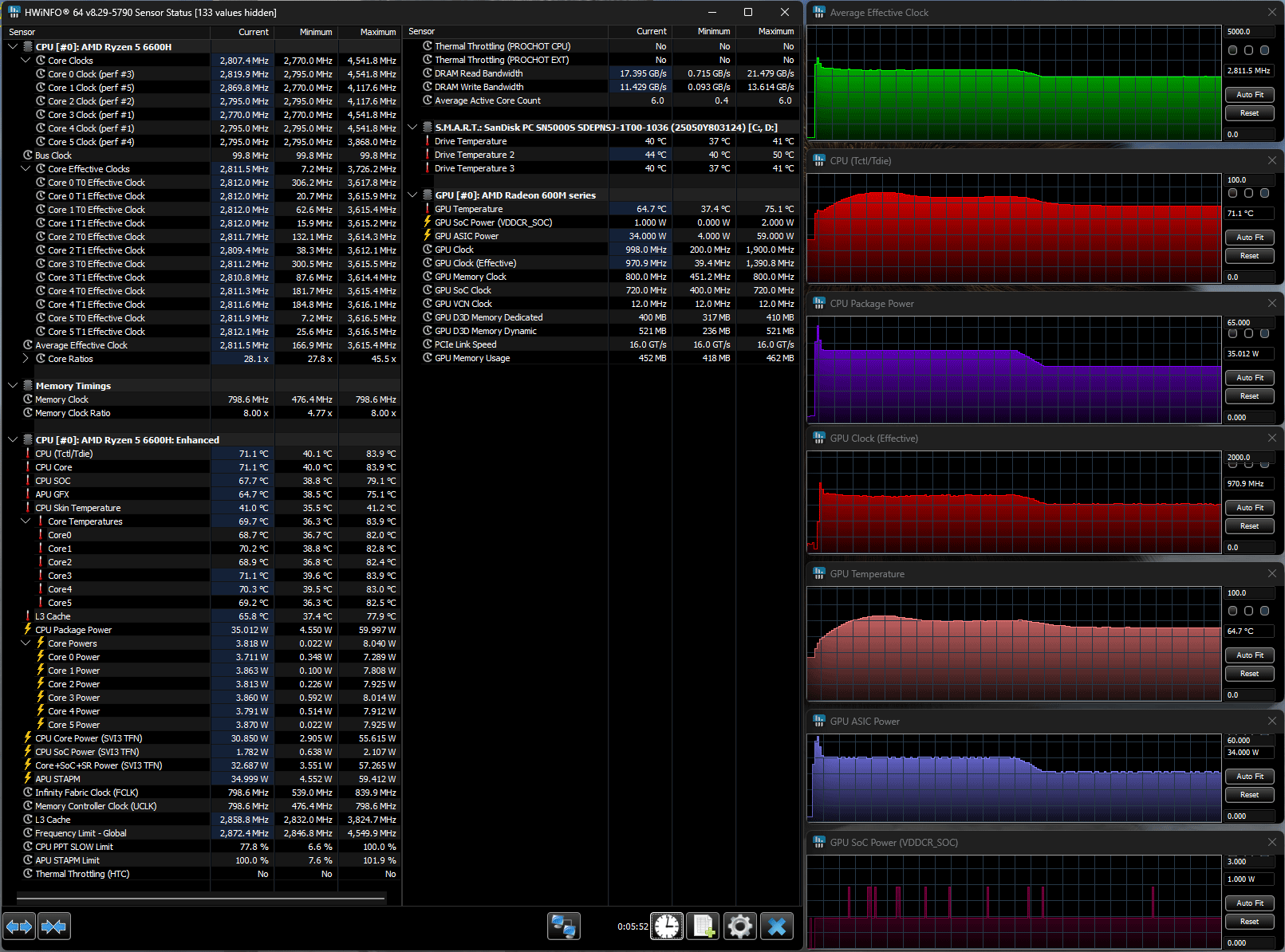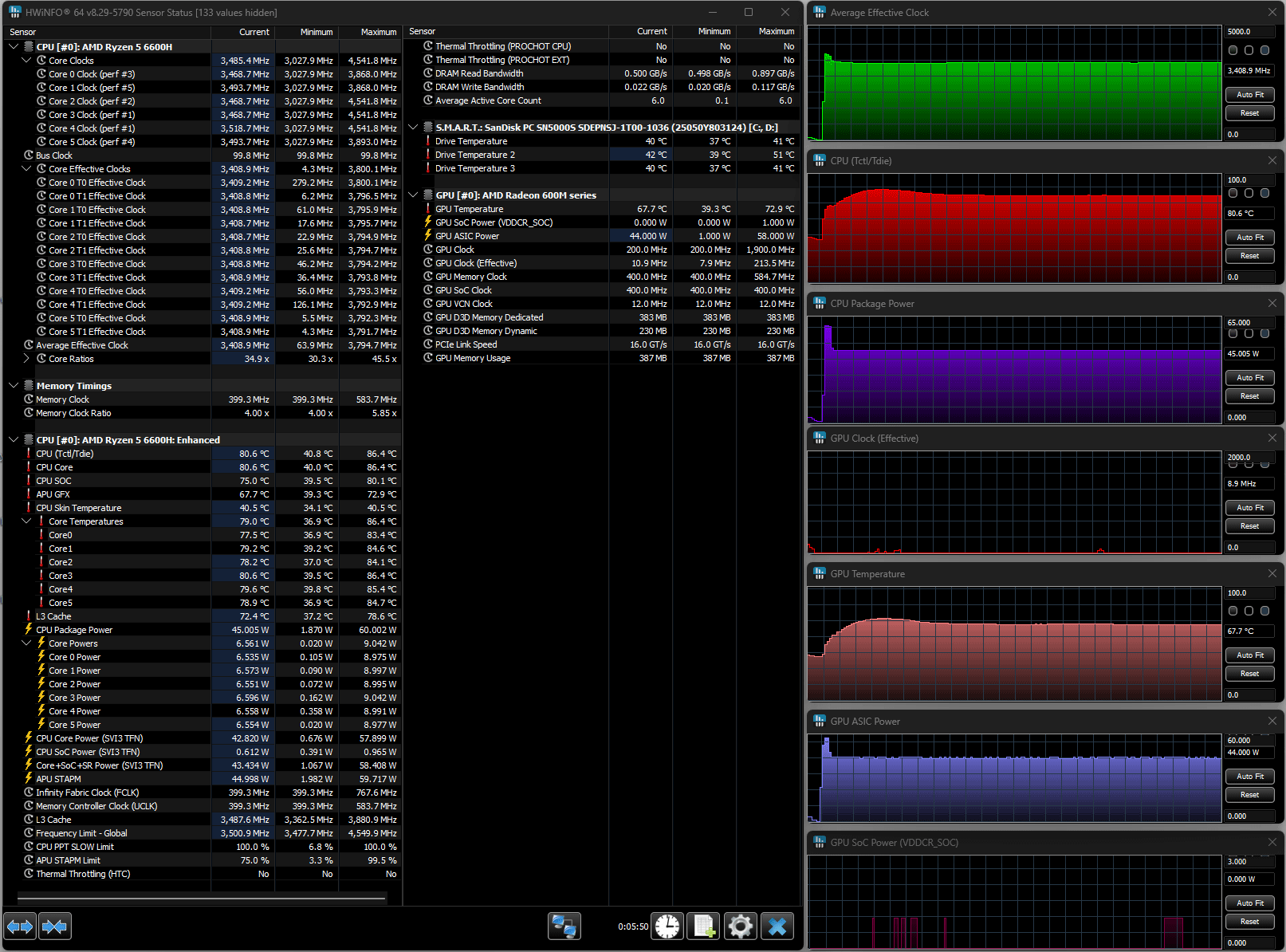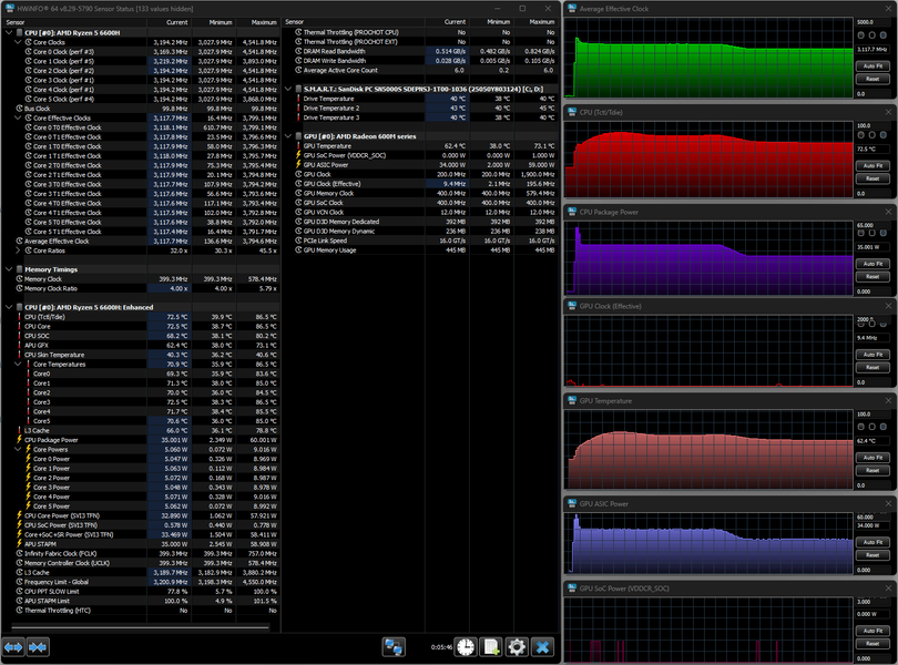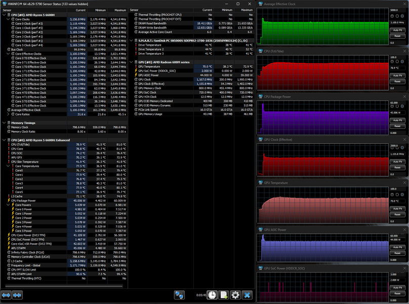 Интегрированный видеоадаптер AMD Radeon 660M процессора Ryzen 5 6600H работает на частотах до 1900 МГц, TGP до 15 Вт.