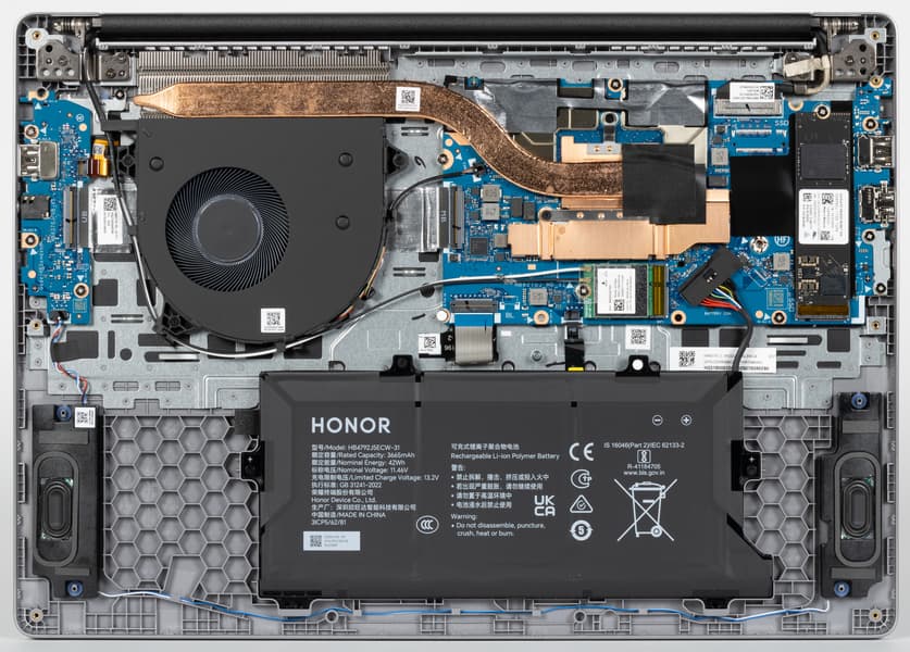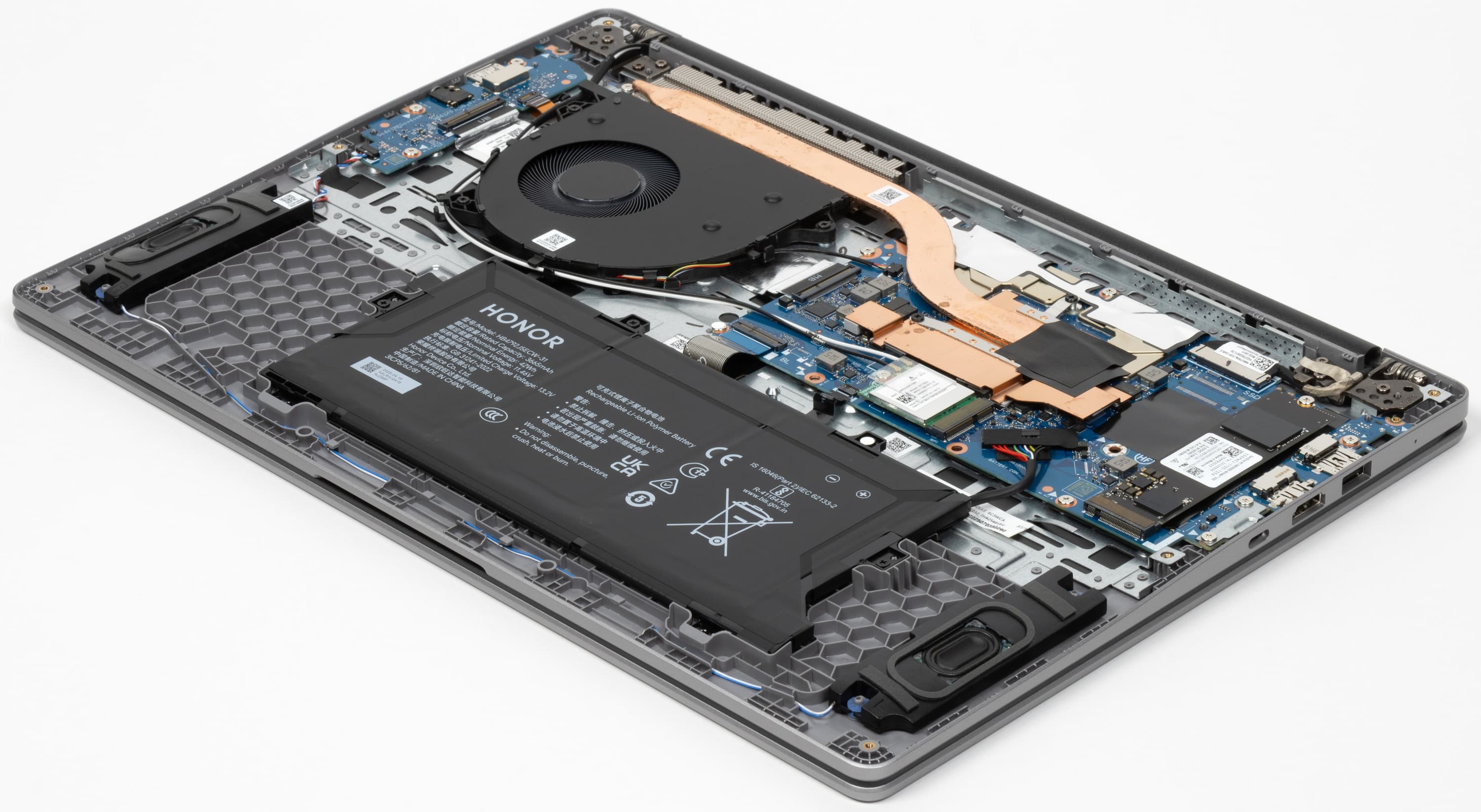 То есть набор внешних портов весьма скромный, хотя и вполне обычный для ноутбуков Honor серии MagicBook X. При стандартных сценариях использования один из портов USB-A у многих владельцев будет занят мышью, USB-C часто будет использоваться для подключения к внешнему источнику питания, и тогда на все прочие нужды остается единственный разъем USB-А — можно предположить, что без USB-хаба (который придется не только покупать отдельно, но еще и частенько носить с собой) смогут обойтись далеко не все.