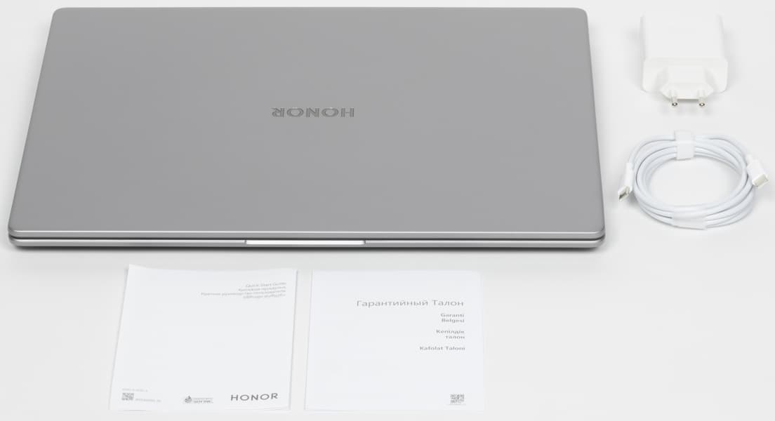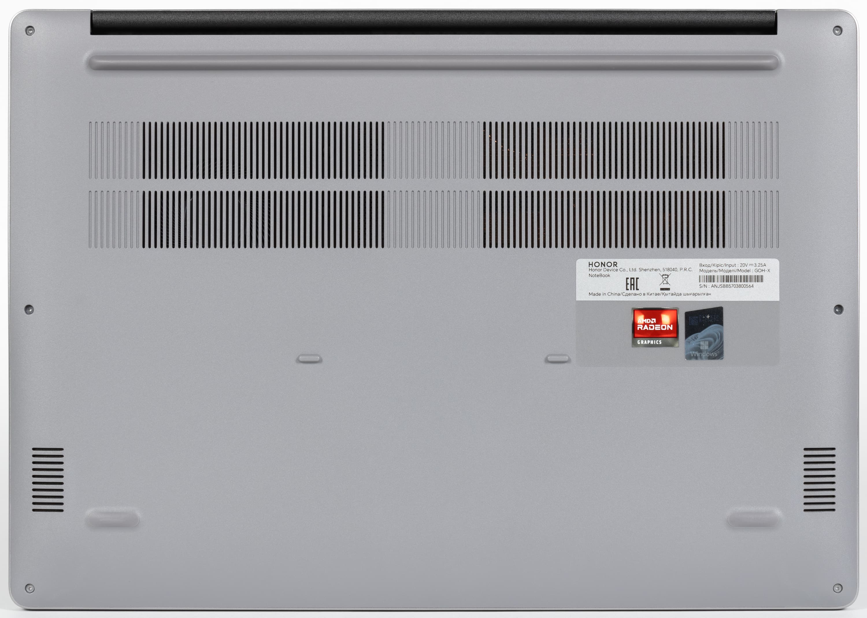 Honor MagicBook X16 (GOH-X) имеет вполне современный внешний вид, а размеры и вес обычные для ноутбуков с такой диагональю экрана. Но набор интерфейсных портов весьма скромный, и если отсутствие разъема и адаптера проводной сети воспринимается хоть и с сожалением, но спокойно — сейчас это редкость у решений данного класса, то трех портов USB, один из которых (Type-C) часто будет занят для подключения к блоку питания, современному пользователю во многих случаях будет мало, да и картовод microSD разработчики вполне могли бы предусмотреть.