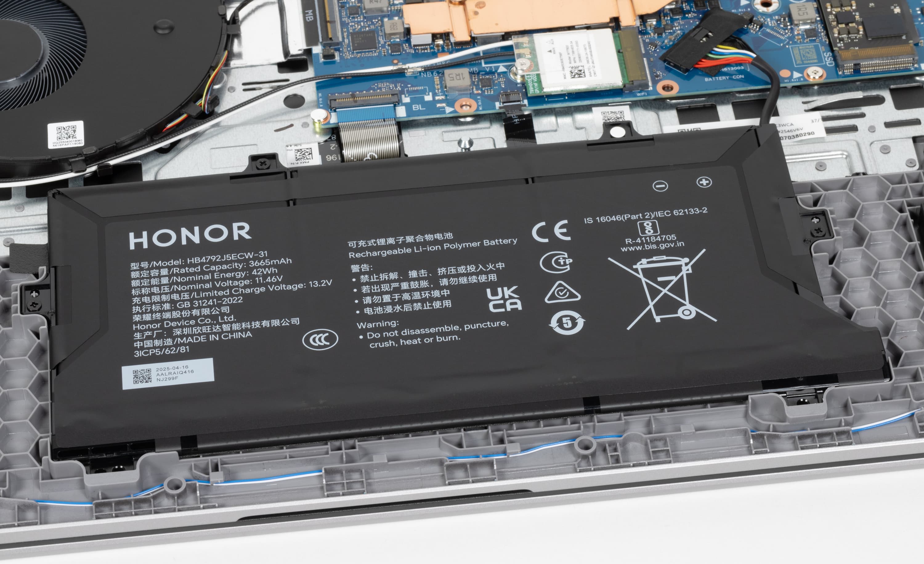 Отсутствие возможности нарастить объем ОЗУ можно воспринять как минус, но будем смотреть на вещи реально: мало кому в подобном ноутбуке нужно больше 16 ГБ. А вот установка второго накопителя рано или поздно может потребоваться многим владельцам, и странно, что производитель сэкономил на разъеме при том, что и контактные площадки для него, и место для дополнительного SSD имеются.