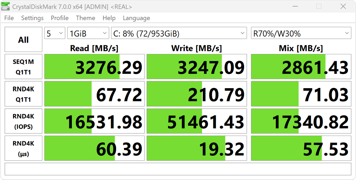 Предлагаем сравнить с результатами тестов еще двух SSD PCIe 4.0 ×4 — Samsung PM9B1 MZVL41T0HBLB (1 ТБ, ноутбук MSI Vector GP77) и WD PC SN560 SDDPNQE (1 ТБ, Asus ZenBook S14 UX5406S):