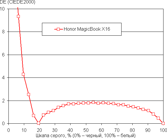 | Яркость черного поля | 0,34 кд/м² | −5,2 | 14 |