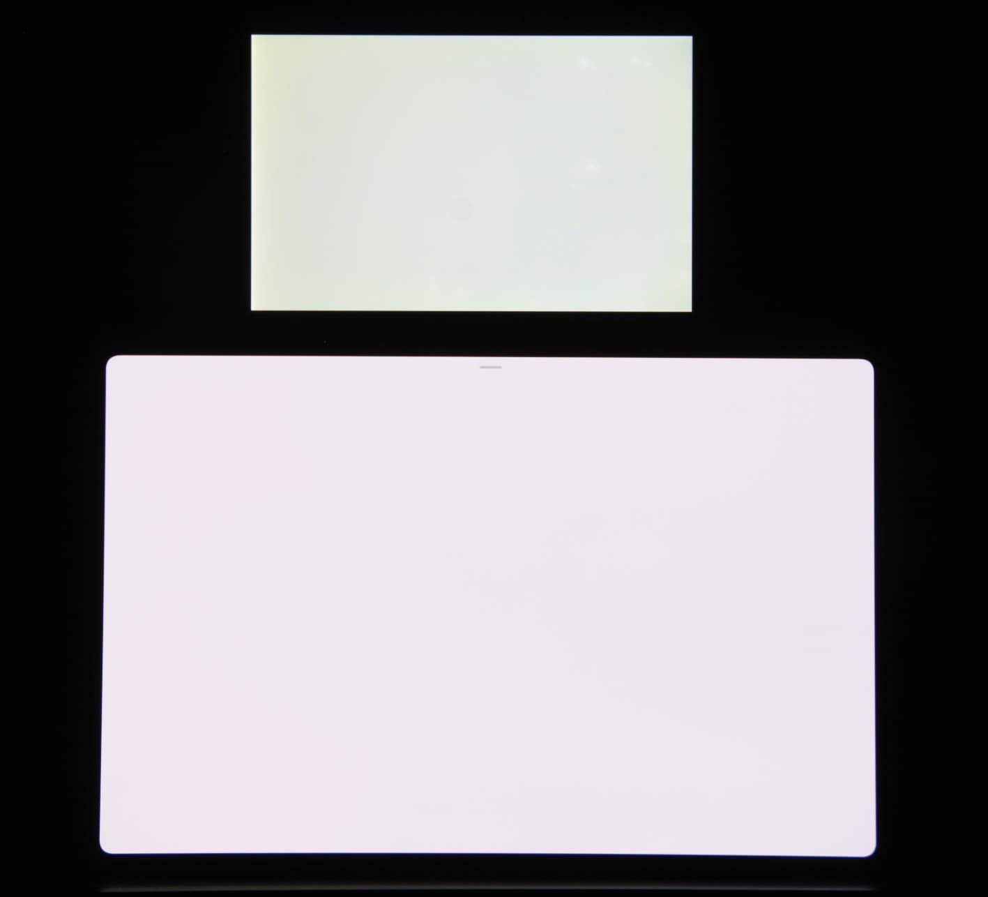 Экран характеризуется великолепными углами обзора. Яркость под углом у обоих экранов заметно уменьшается (если сравнивать с Nexus 7), но в случае тестируемого планшета падение яркости выражено гораздо меньше. В итоге, даже если установить формально одинаковую яркость, то OLED-экран визуально выглядит гораздо более ярким (в сравнении с ЖК-экранами), так как на экран мобильного устройства часто приходится смотреть как минимум под небольшим углом. Правда, у этого OLED-экрана белый цвет при отклонении на большие углы приобретает легкий радужный оттенок, но черный цвет остается просто черным под любыми углами. Он настолько черный, что параметр контрастности в данном случае неприменим. Для сравнения приведем фотографии, на которых на экраны тестируемого планшета и второго участника сравнения выведены одинаковые изображения (Nexus 7 выше), при этом яркость экранов изначально установлена примерно на 200 кд/м², а цветовой баланс на фотоаппарате принудительно переключен на 6500 К.