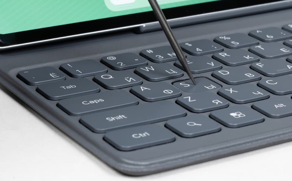 Физических коннекторов для клавиатуры на планшете нет, поэтому Smart Bluetooth Keyboard присоединяется по Bluetooth. После первого подключения это будет происходить автоматически.