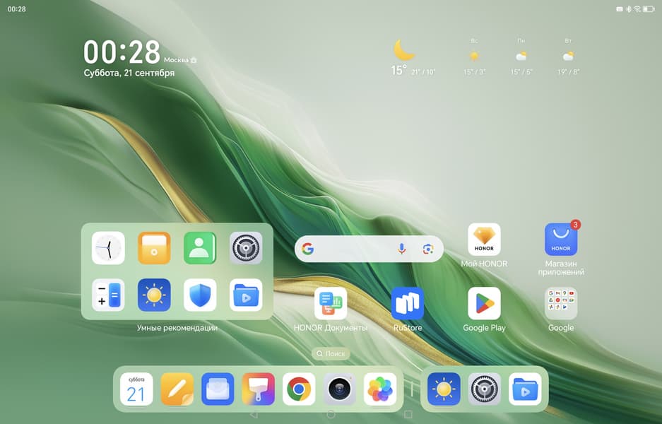 Honor MagicPad 2 12,3″ работает на базе Android 14, поверх которой установлена собственная оболочка Honor MagicOS, в данном случае она имеет версию 8.0. Как и раньше, мы подчеркиваем, что пользователю здесь доступны все сервисы Google, включая установку приложений из Play Store (хотя не стоит забывать про проблемы с российскими платежными картами, но это не вина Honor).