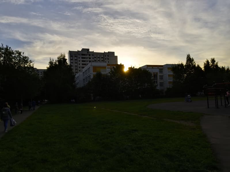 Видно, что с цветом iPad работает получше – обратите внимание на цвет неба в первой фото. Да и при съемке против закатного солнца Honor показал себя хуже. Но при этом шумодав у него работает эффективнее и изящнее. Это видно, если открыть оригиналы снимков и посмотреть на траву.