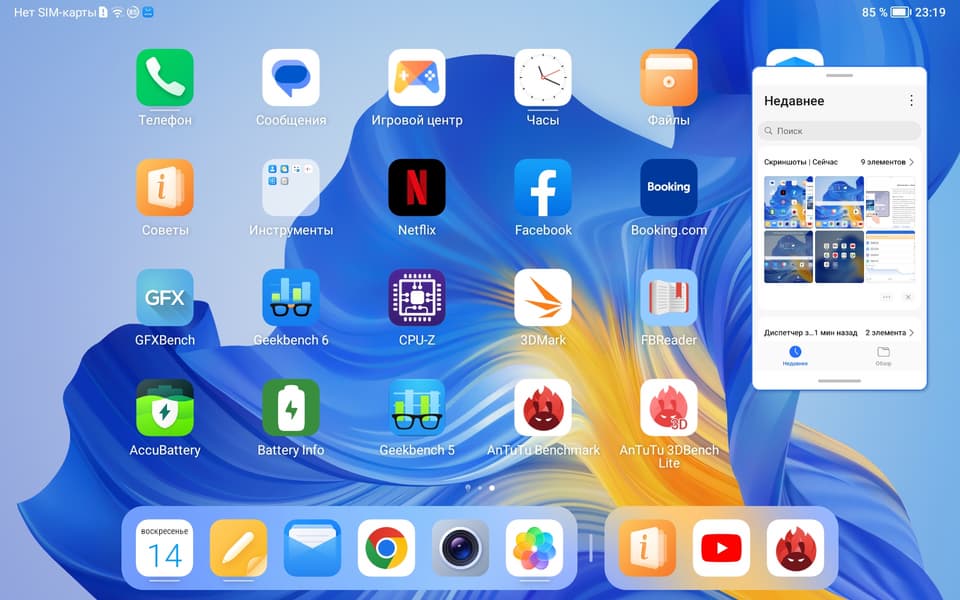 Что касается предустановленных приложений, то в качестве плюса отметим наличие офисного пакета WPS Office и фирменного магазина приложений Honor (помимо Google Play Store). Но уж точно лишними показались нам в текущих реалиях Booking, Netflix и одна синяя запрещенная соцсеть.
