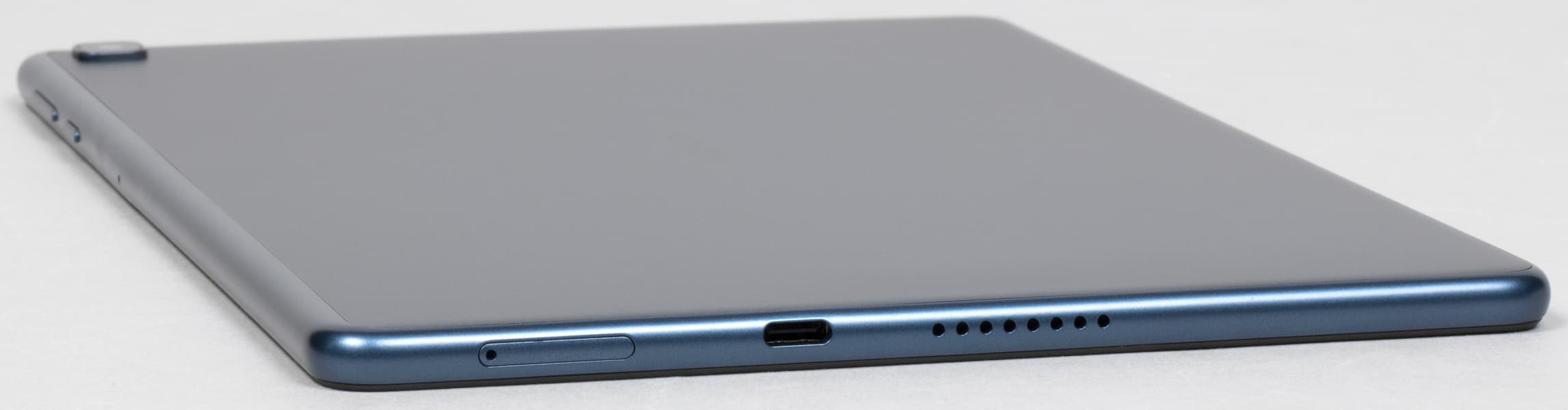 Тыльная поверхность устройства выполнена из металла, грани — из пластика. Но поскольку пластик выкрашен в тот же оттенок — благородный синий с серовато-стальным отливом, узнать, что материалы тут разные, можно, только взяв планшет в руки.