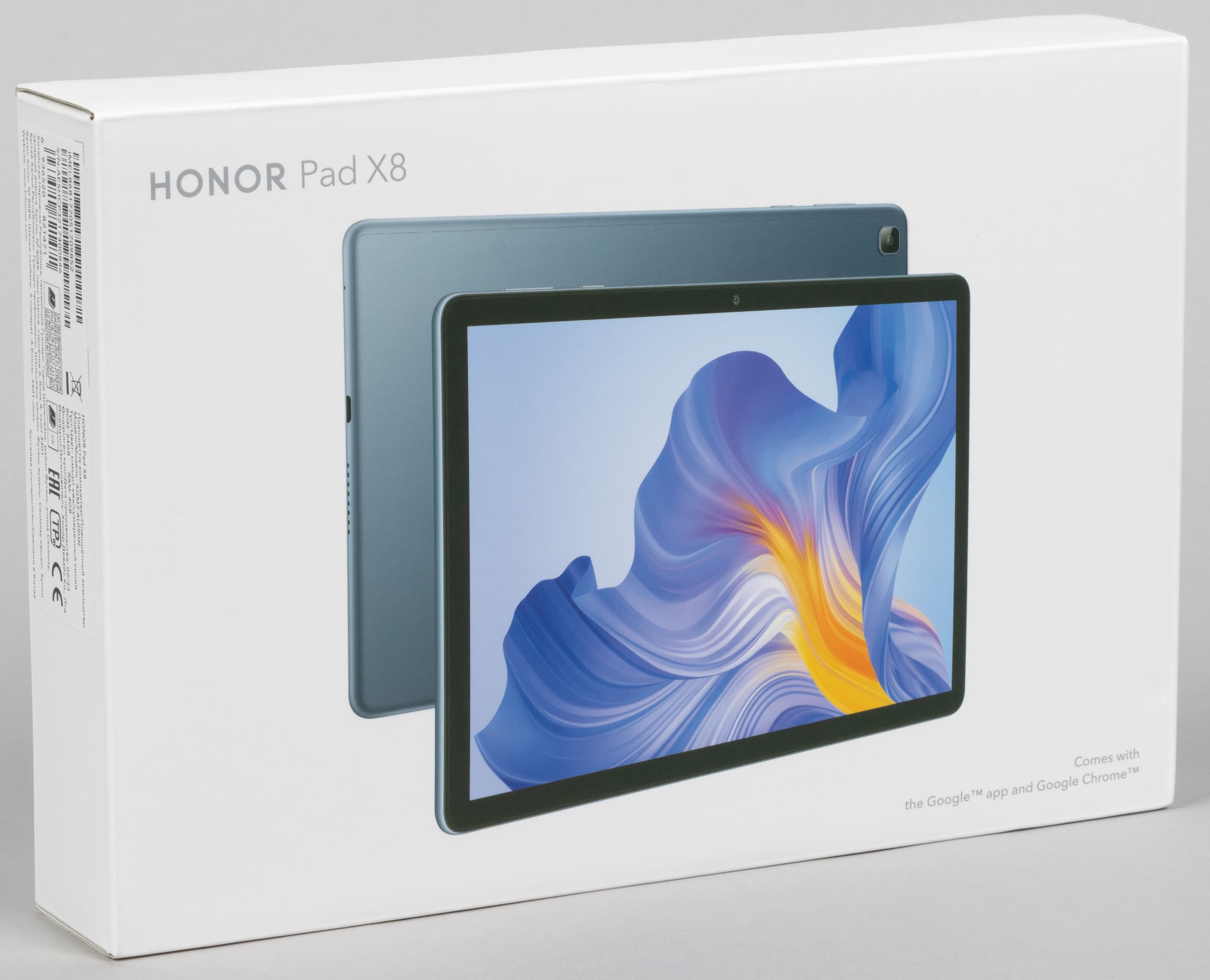 Упаковка оформлена в привычном для устройств Honor стиле. Как и прежде, производитель подчеркивает даже на коробке: Comes with the Google app and Google Chrome.