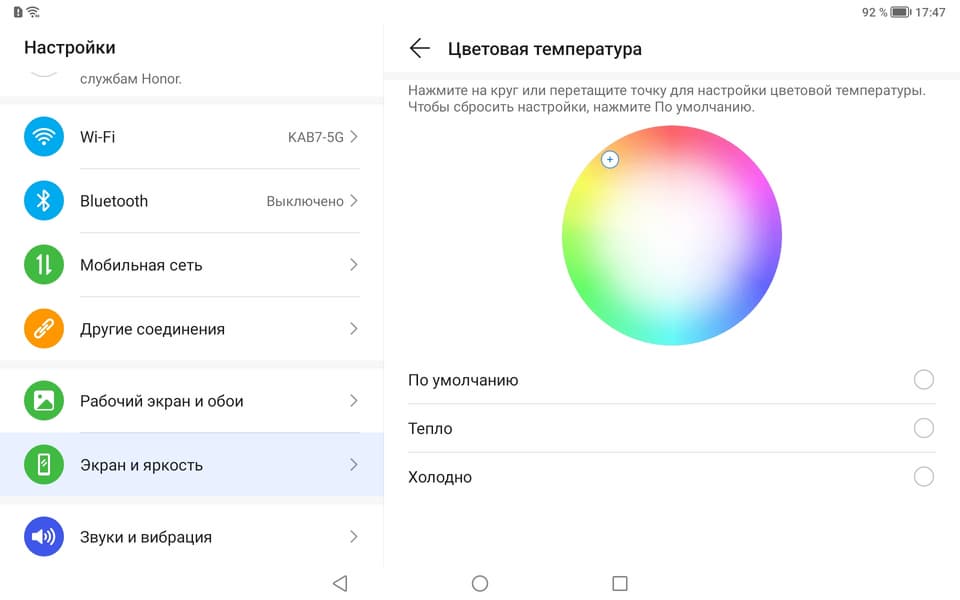 Цвета на экране Honor Pad X8 имеют насыщенность близкую к естественной, а цветовой баланс у экранов явно различается.