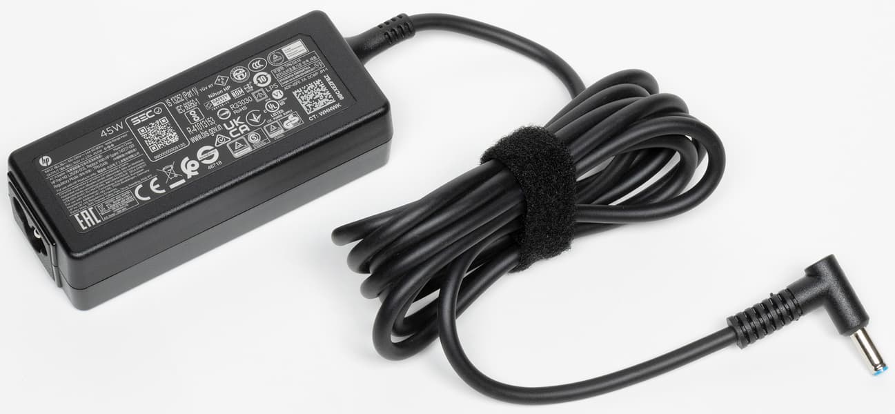 Блок питания компактный и не займет много места в сумке, но сегодня хотелось бы видеть не проприетарный коннектор, а поддержку Power Delivery и соответствующий разъем Type-C, тогда подобрать подменный адаптер будет гораздо проще.