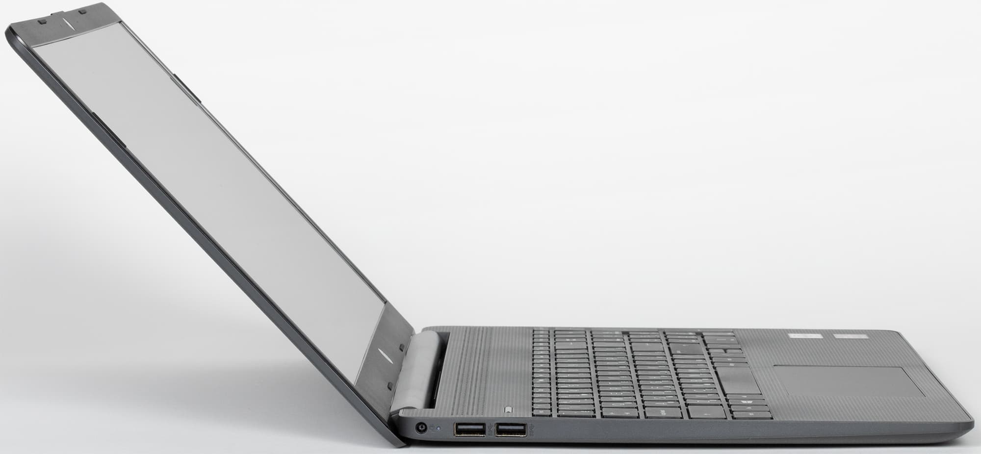В задней части левого бока ноутбука расположены разъем для подключения адаптера питания с индикатором (оранжевый во время зарядки, белый при полном заряде, мигает при низком остатке заряда) и пара портов USB 3.1 Gen1 Type-A.