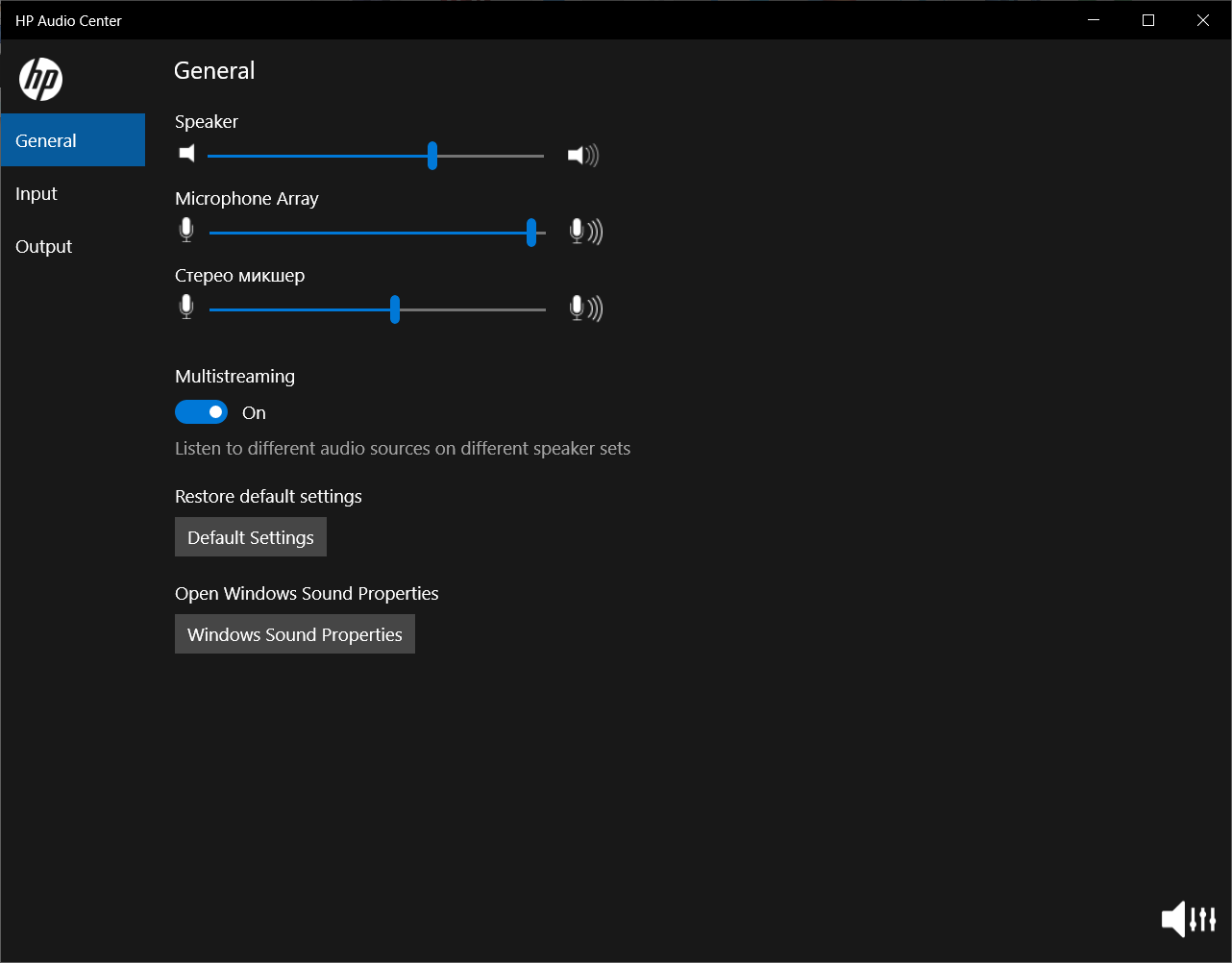 Есть некоторое количество утилит HP, включая Audio Center и PC Hardware Diagnostics, а также подробная справочная документация (в том числе на русском языке).