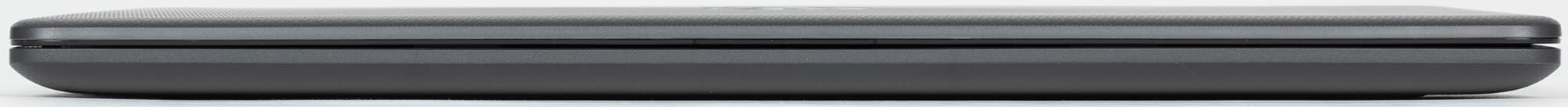 Толщина ноутбука хоть и не рекордно малая, но очень небольшая: максимум приходится на заднюю часть, где наш замер показал 18,5 мм. Спереди чуть меньше — на неполный миллиметр, хотя зрительно кажется, что к передней кромке аппарат становится заметно тоньше, но это происходит из-за клиновидной формы боковых торцов.