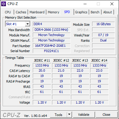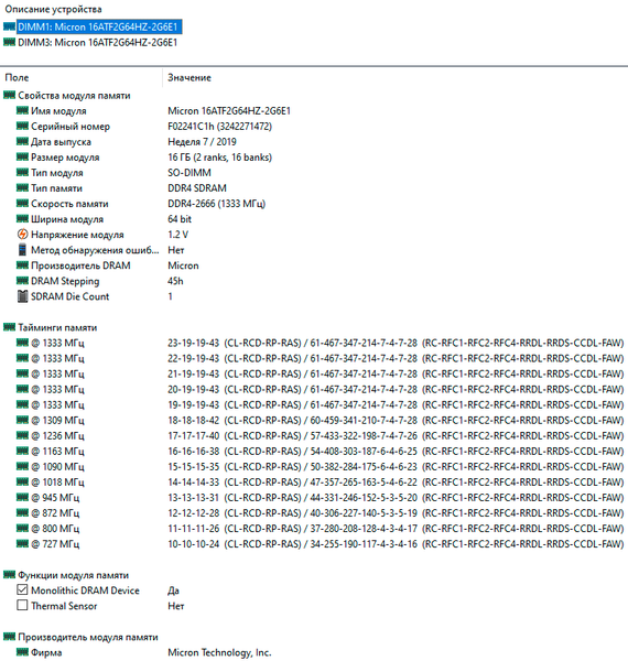 Производителем чипов памяти, используемых в модулях, является компания Micron, маркировка — 16ATF2G64HZ-2G6E1.