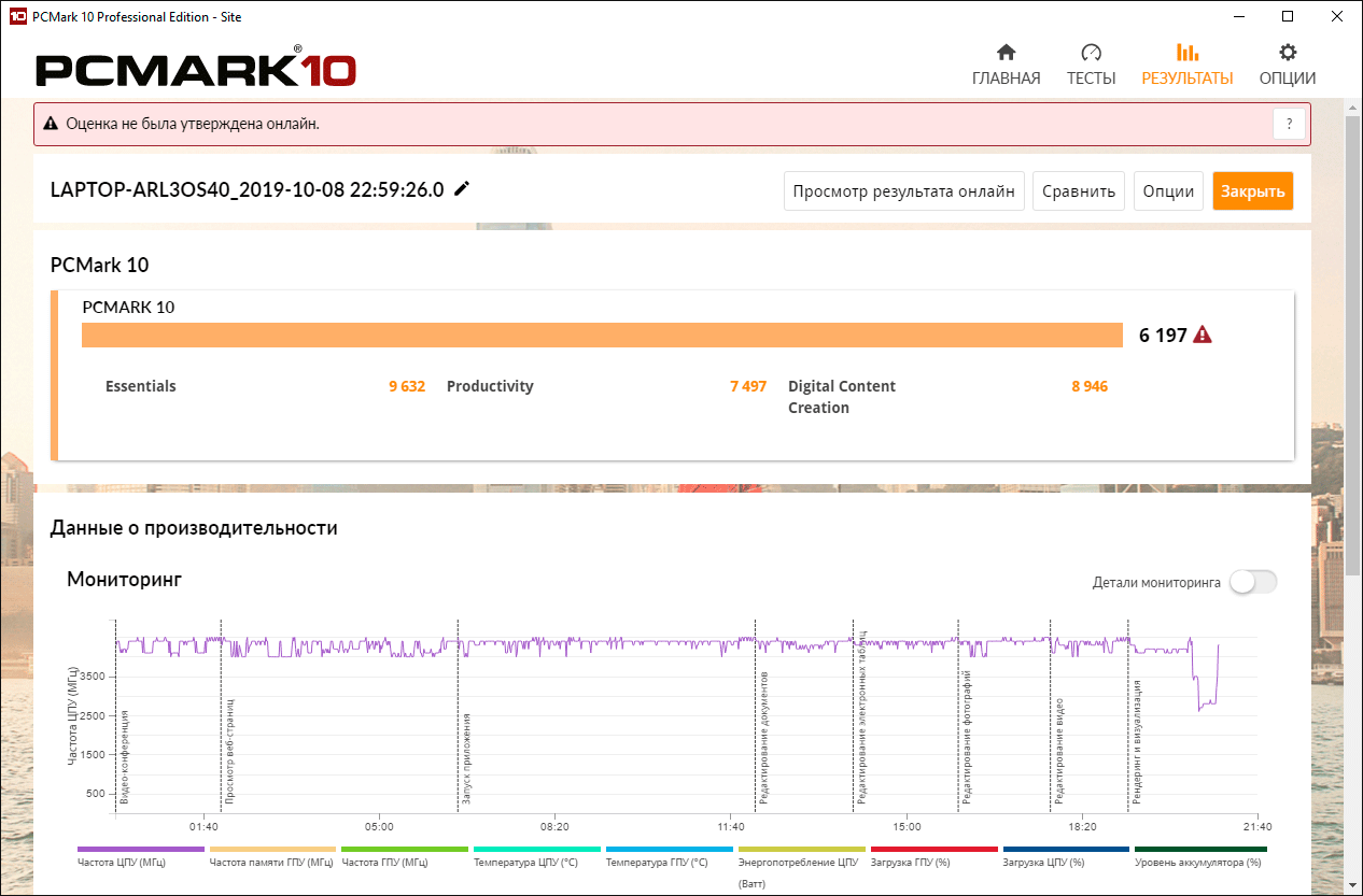 В два раза производительность снизилась только в тесте Cinebench R20, а в остальных бенчмарках падение составило около 30%-35%. Меньше всех потерял PCMark 10 Pro — лишь 21%.