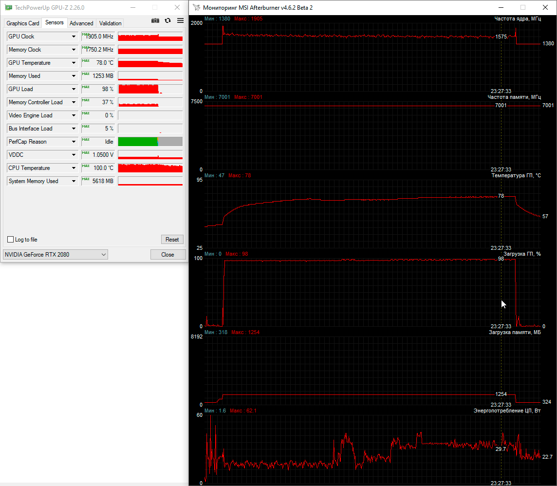 | Максимальная нагрузка на видеокарту | 37,5 | громко, но терпимо | 200 |
