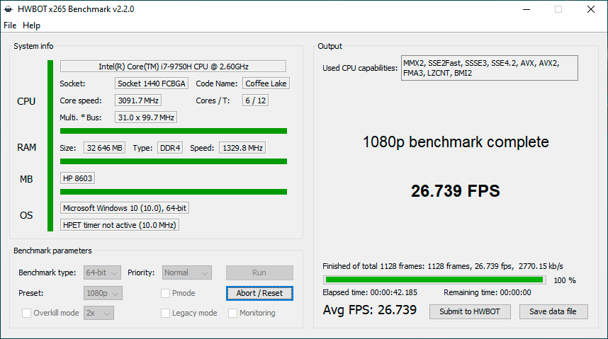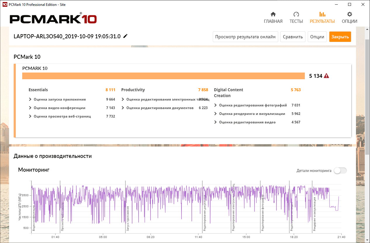 Самое время проверить, насколько снижается производительность, сравнив результаты процессорных тестов в режиме Производительный при питании от электросети и в режиме По умолчанию при питании от аккумулятора.