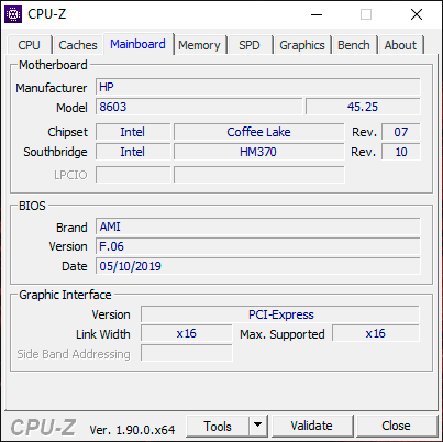 В основе Omen 17-CB0006UR лежит материнская плата на наборе системной логики Intel HM370 (BIOS версии F.06 от 5 мая 2019 года).
