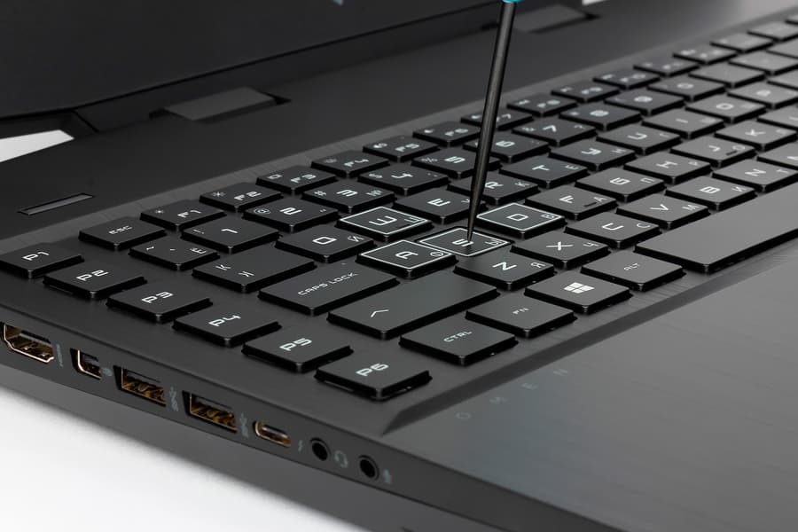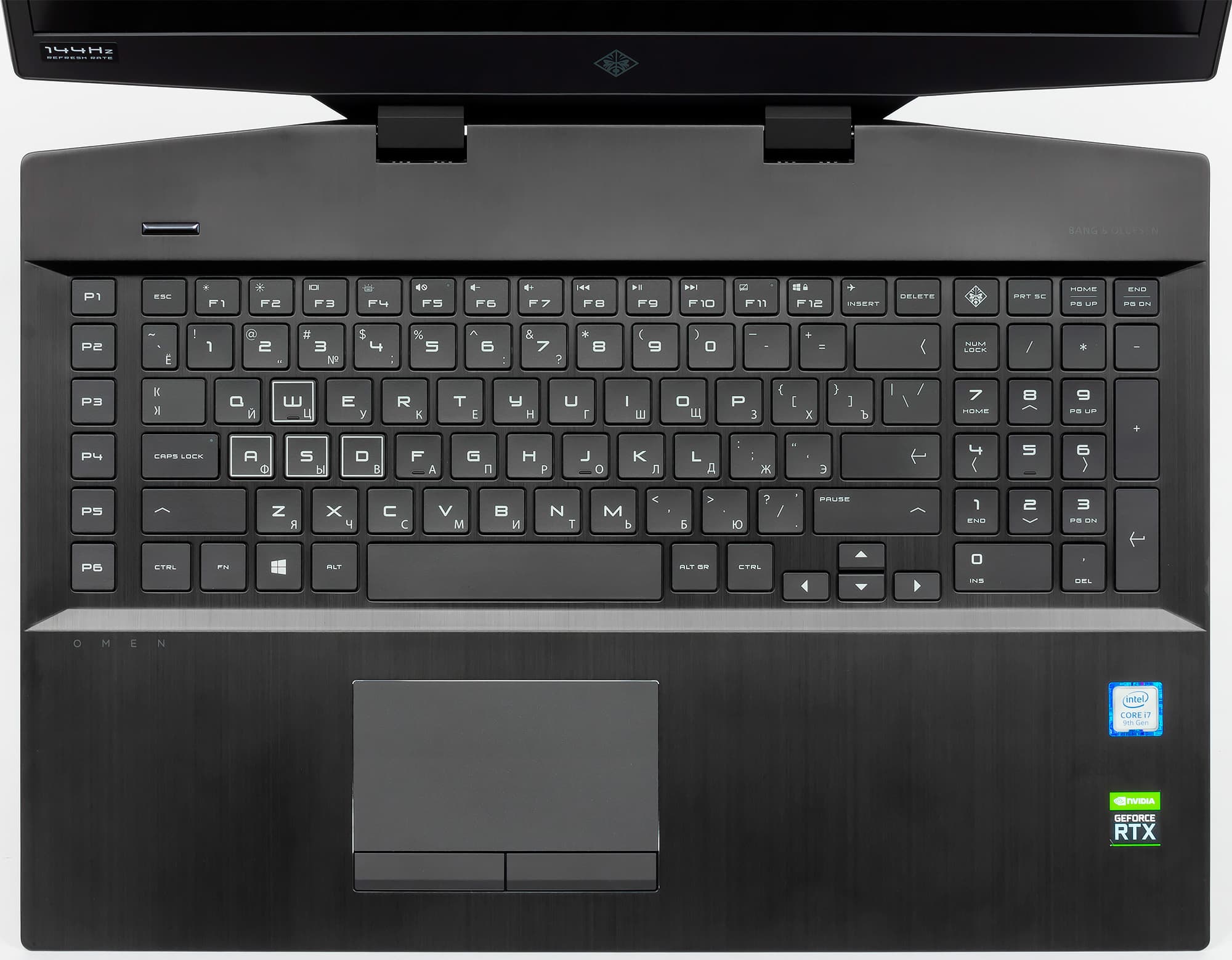 Omen 17-CB0006UR оснащается практически полноразмерной клавиатурой с блоком цифровых клавиш и шестью программируемыми функциональными клавишами, расположенными слева вертикальным рядом.