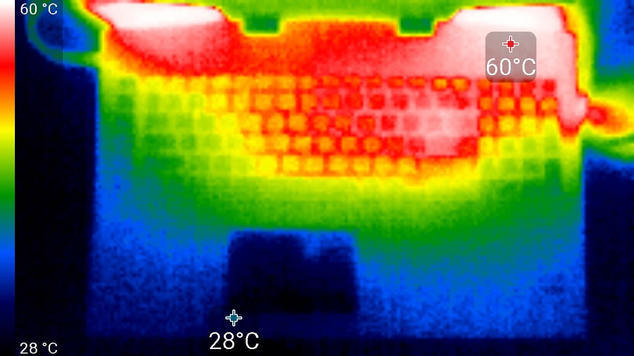 Ниже приведены термоснимки, полученные после долговременной работы ноутбука под максимальной нагрузкой на CPU и GPU: