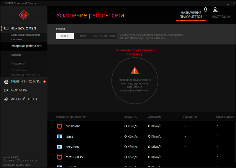 Для приоритезации сетевых потоков можно использовать все ту же программу Omen Command Center, где есть соответствующий раздел.