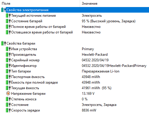 Время работы от батареи
